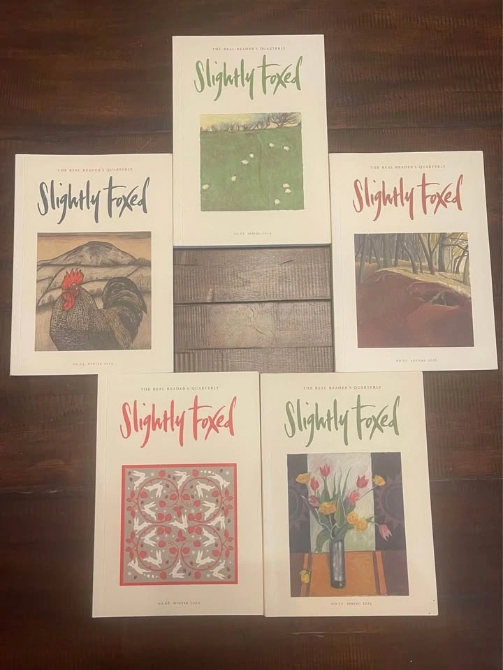 Selling a beautiful set of Slightly Foxed literary magazines in excellent condition. These are high-quality paperback editions known for their charming cover art and thoughtful essays about classic books and authors.