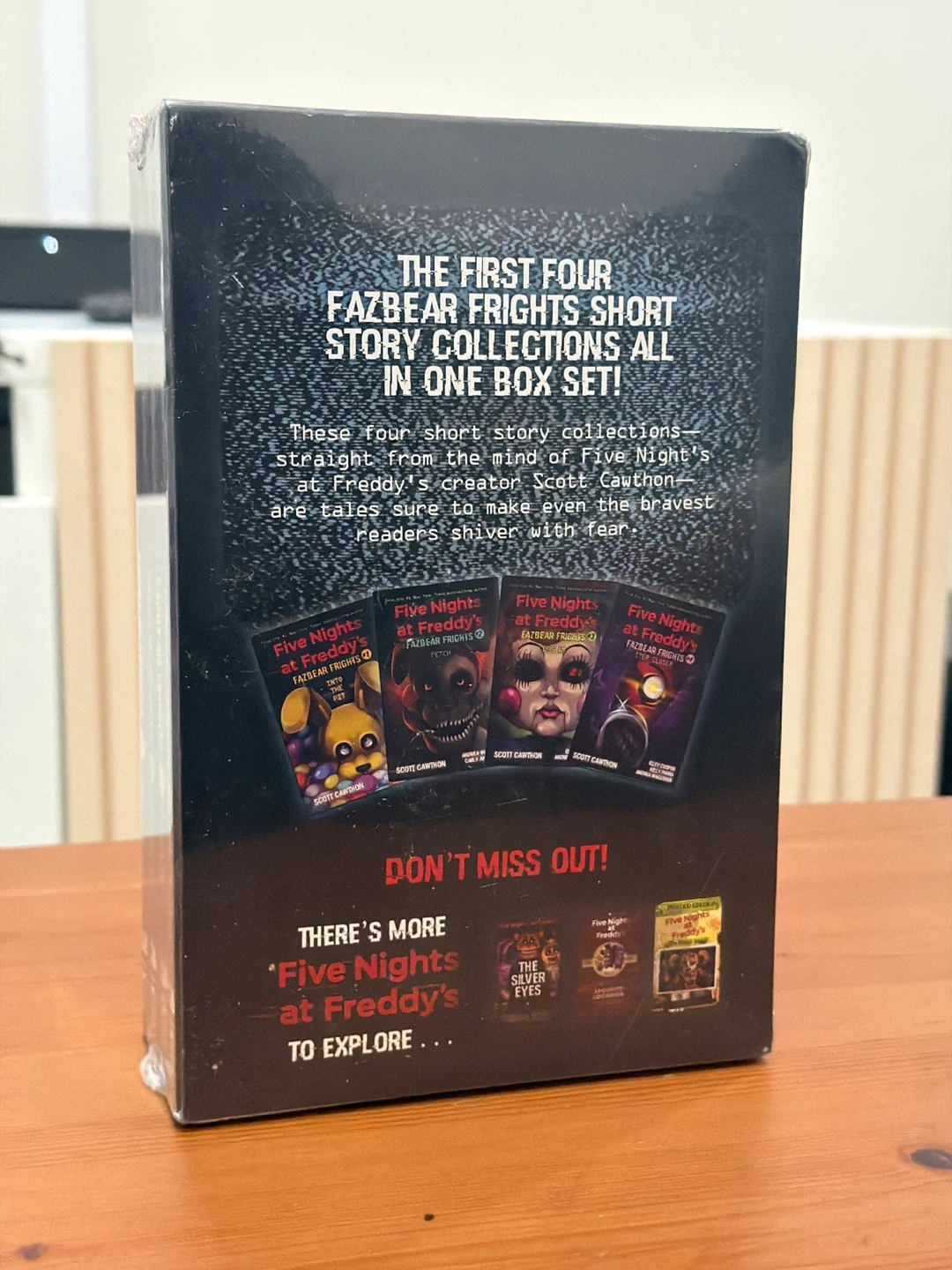Selling a complete box set of the first four Fazbear Frights short story collections from the Five Nights at Freddy's series! This set includes volumes #1, #2, #3, and #4. It's a great collection for fans of the series and comes in its original packaging