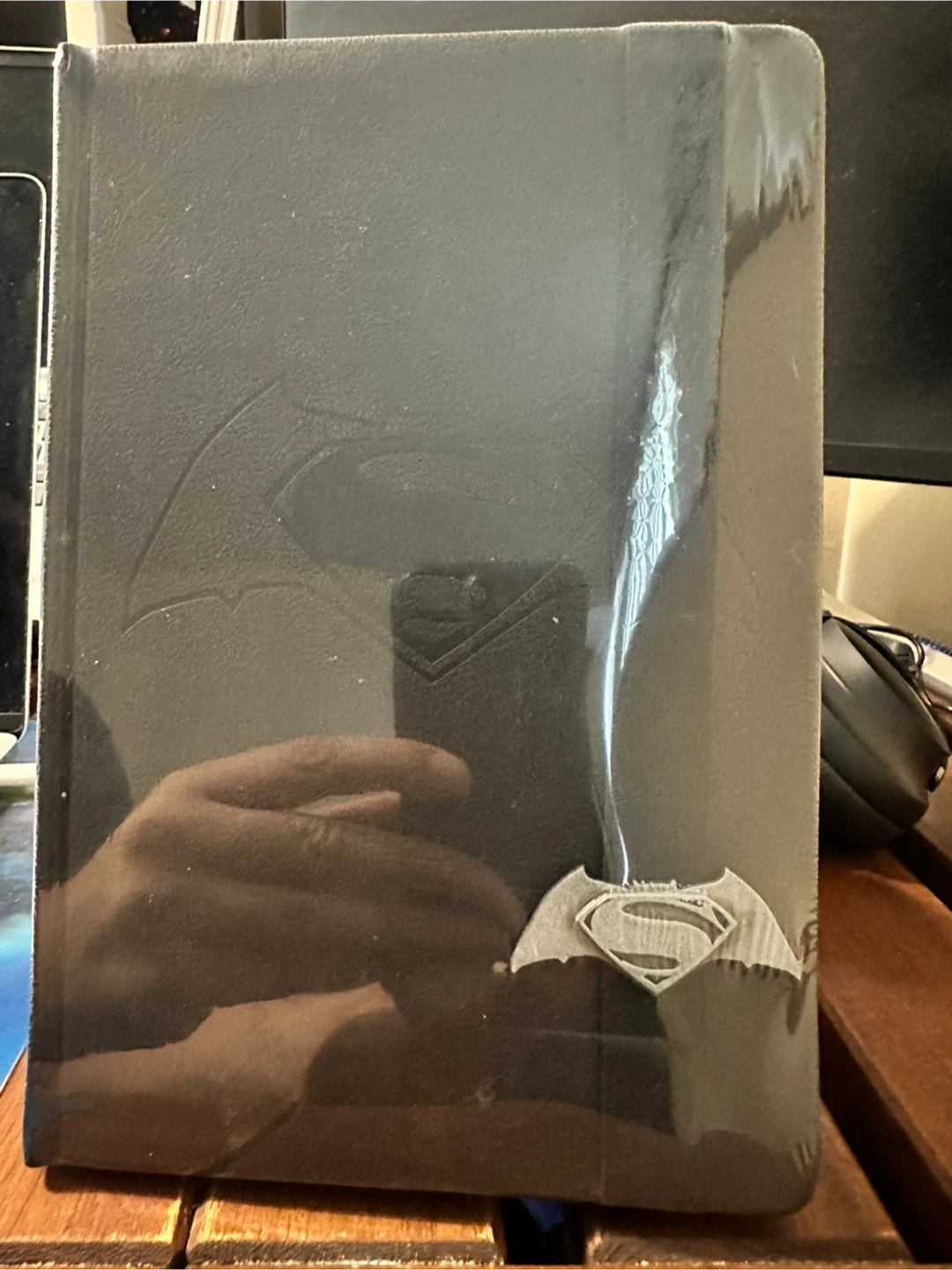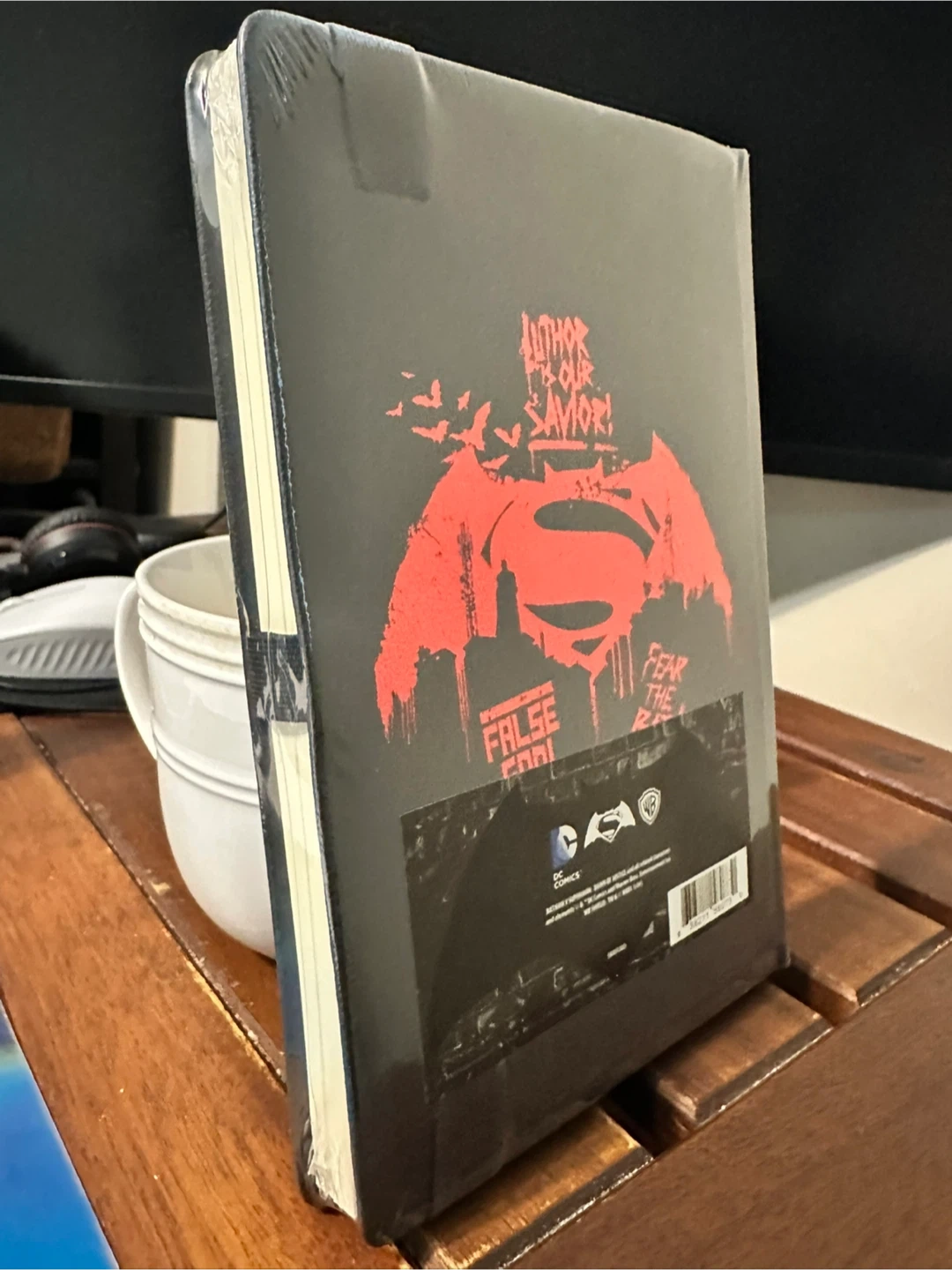 This journal features the iconic Superman logo and Batman symbol. It's the perfect place to jot down your thoughts. Comes shrink-wrapped for protection.