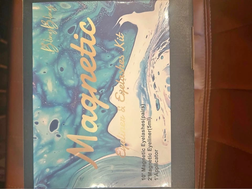 Brand new magnetic eyelashes kit with 10 pairs of magnetic eyelashes, 2 magnetic eyeliners, and 1 applicator. Still sealed in original packaging.
