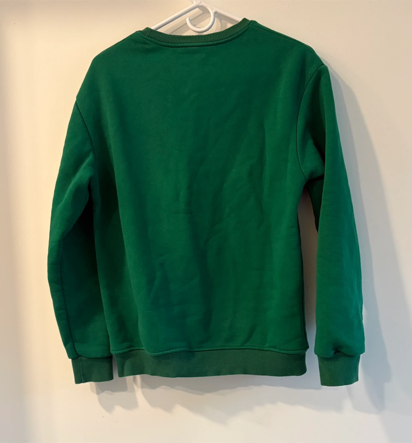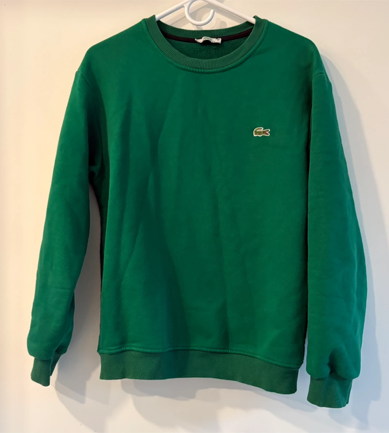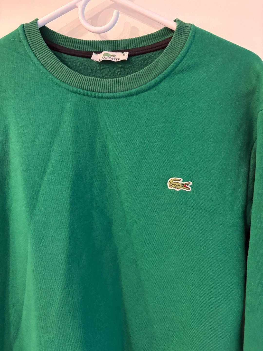Green crewneck sweatshirt from Lacoste. Features the signature embroidered crocodile logo. Made with a soft cotton blend.