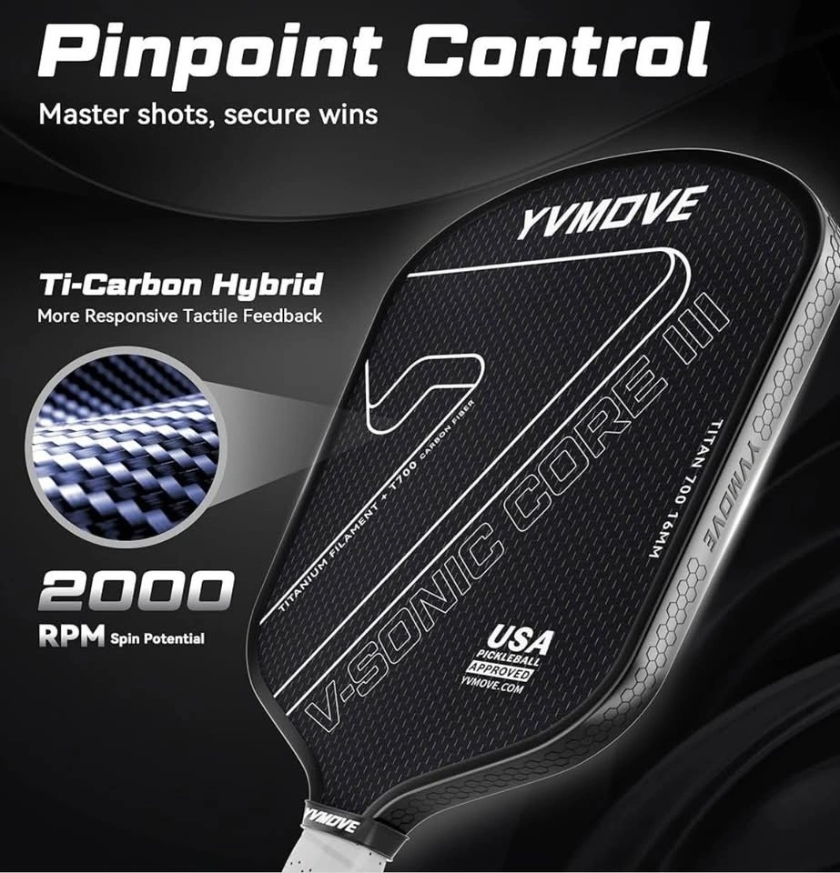 Titanium-Carbon Hybrid Face for Elite Control: From a 3-layer T700-12K carbon fiber base to a surface layer of titanium-alloy woven carbon fiber, this composite delivers a solid, responsive feel for exceptional touch and pinpoint control on both soft dinks and powerful drives.