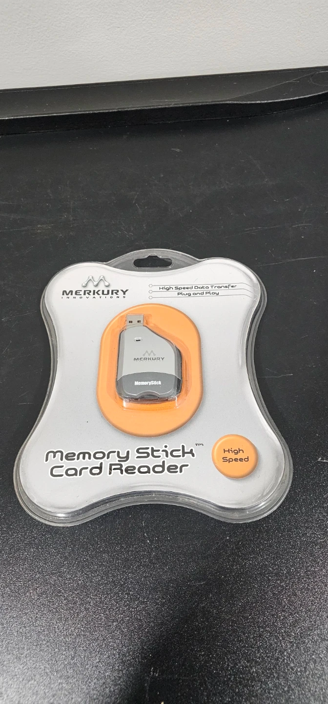 Selling a brand new Merkury Innovations Memory Stick Card Reader! It's still in its original packaging and has never been used. This card reader offers high-speed data transfer and is plug-and-play, installing in seconds. It powers via a USB port and requires no external power supply. Included is a card reader, CD driver, and USB cable. It also comes with a one-year limited warranty.