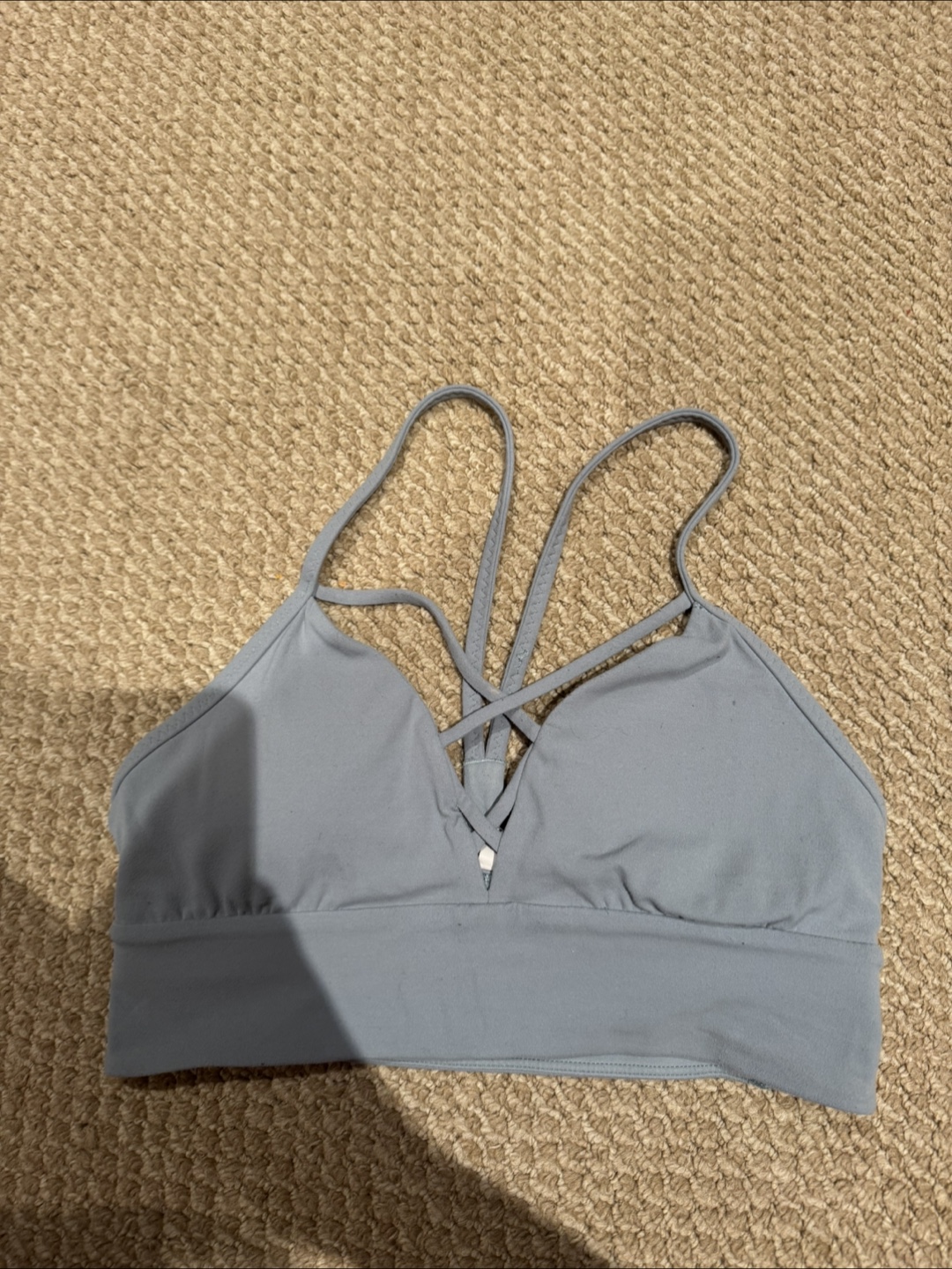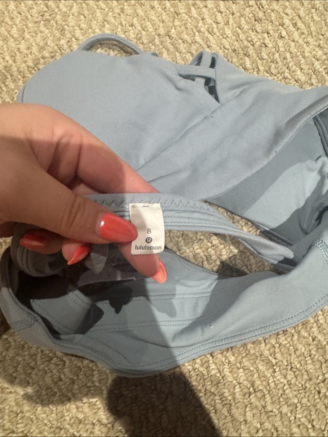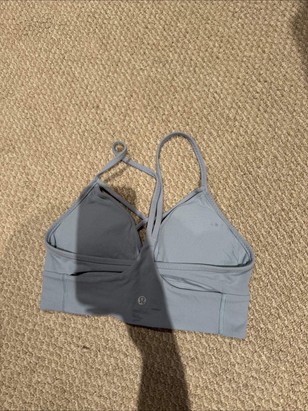 Selling a Lululemon sports bra in size 8. It's in good condition (mini stain on the front strap - see picture) and ready for a new home! Perfect for your workouts or everyday wear.
