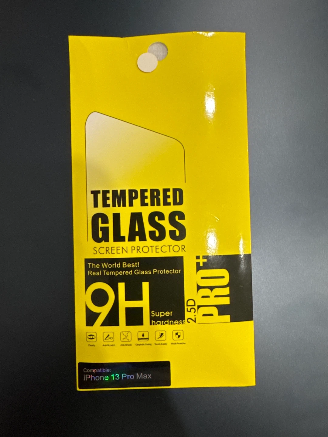 Tempered glass screen protector for iPhone 13 Pro Max. It's 9H super hardness with anti-scratch and anti-shock properties. Oleophobic coating ensures touch easily and whole protection.