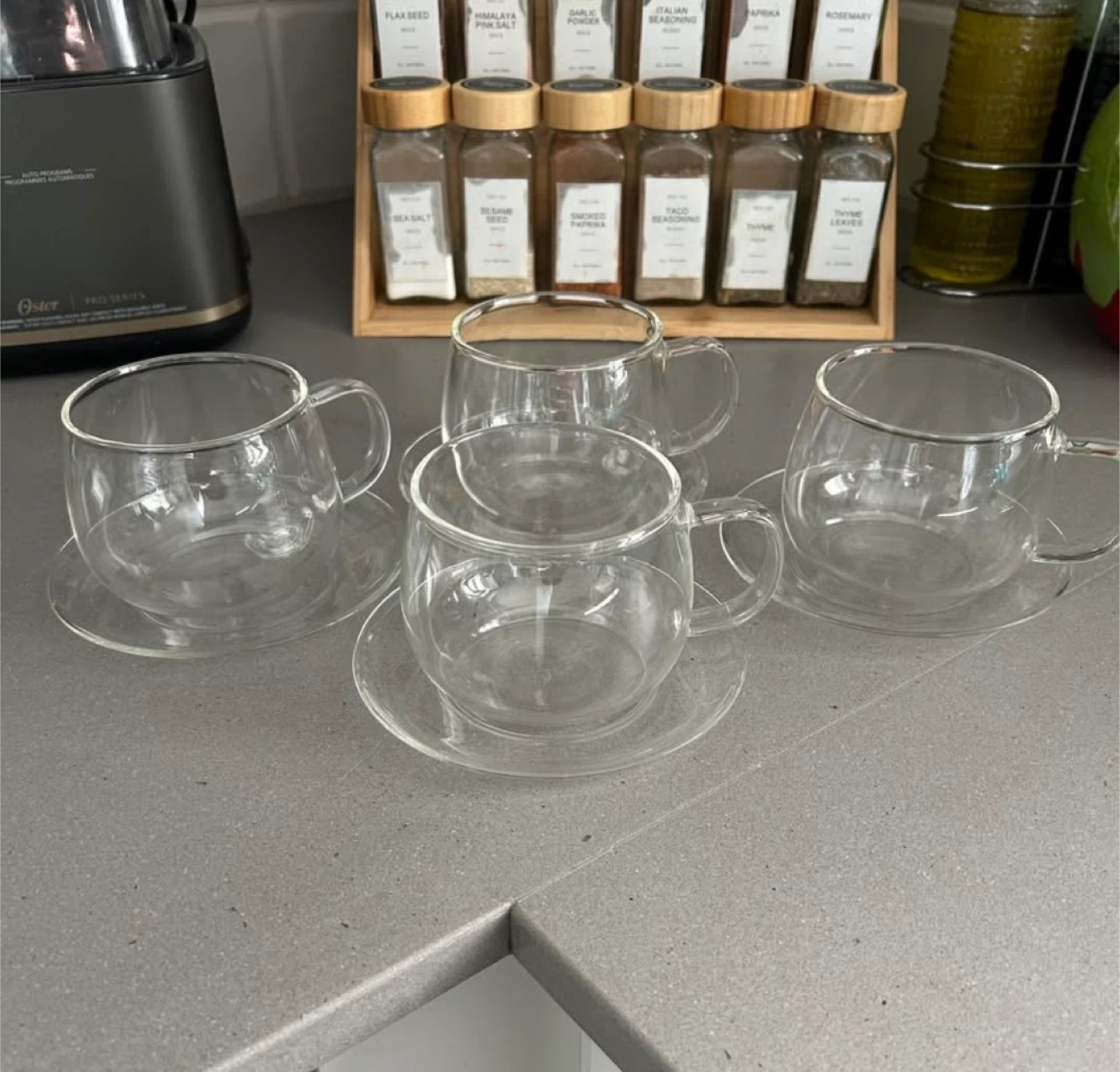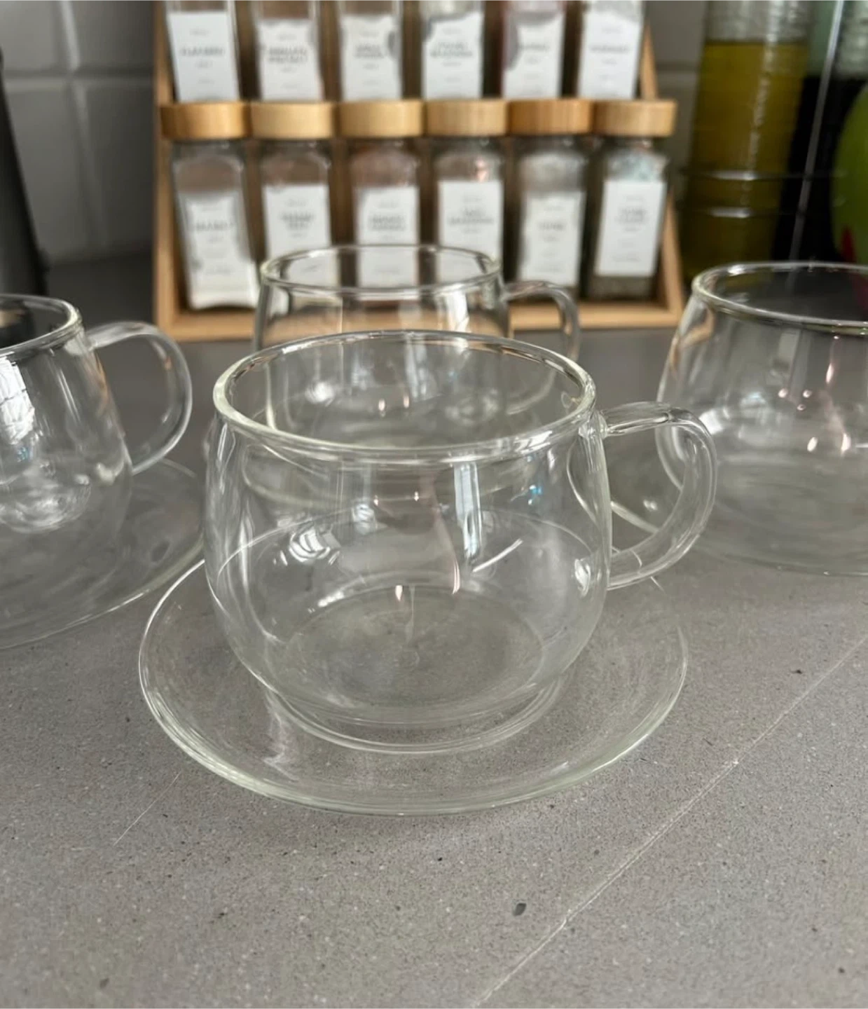 Selling a set of 4 11oz borosilicate glass cups and saucers.