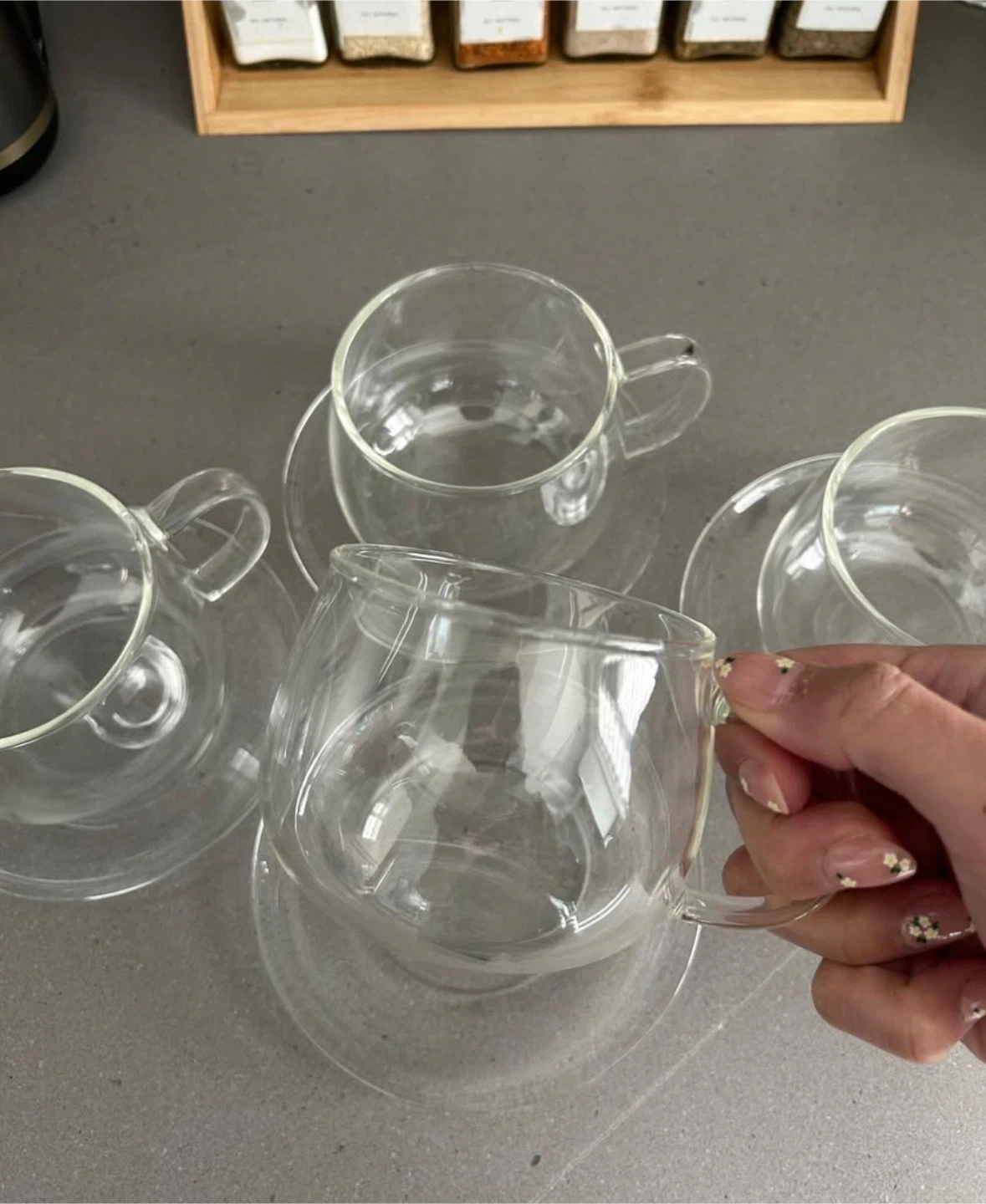 Selling a set of 4 11oz borosilicate glass cups and saucers.