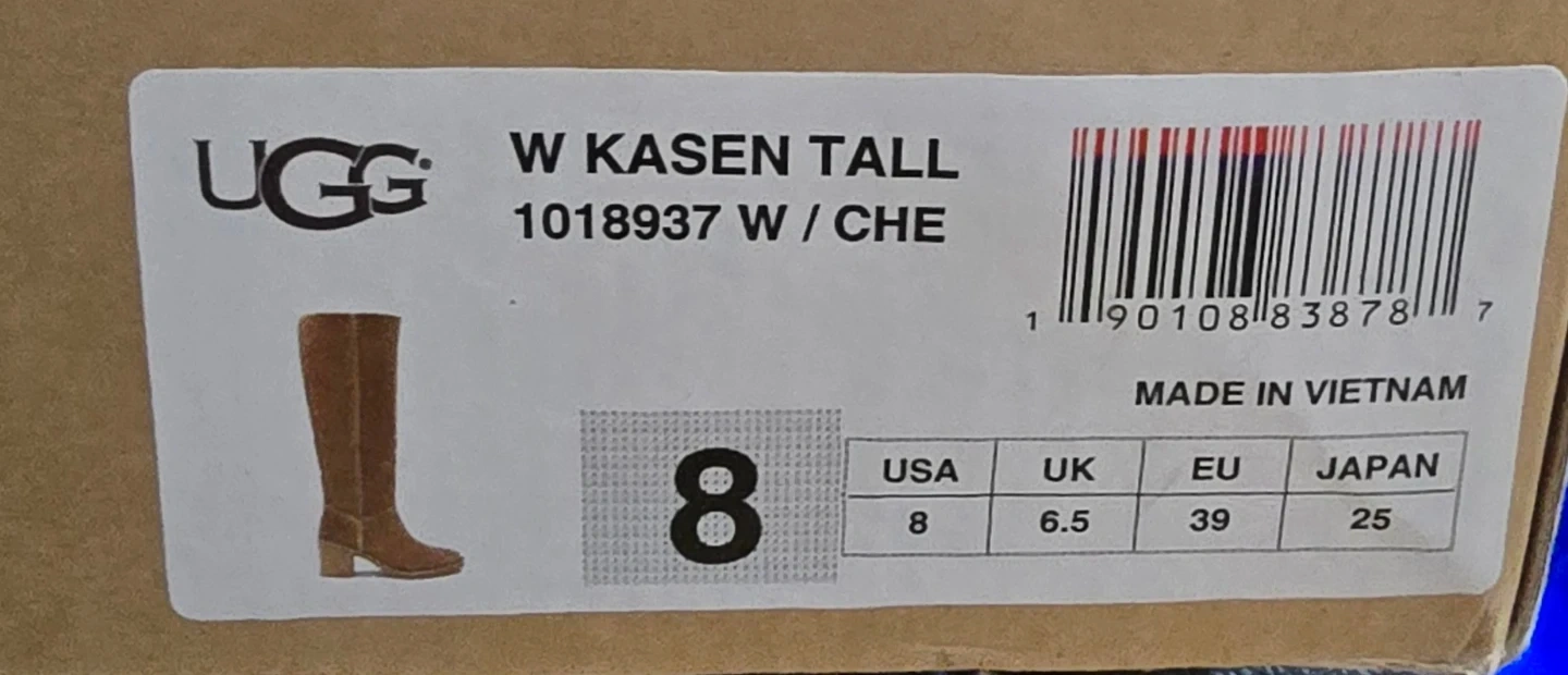 Selling a pair of UGG Kasen Tall boots in women's size 8. These stylish boots are a beautiful brown color and come in the original box.