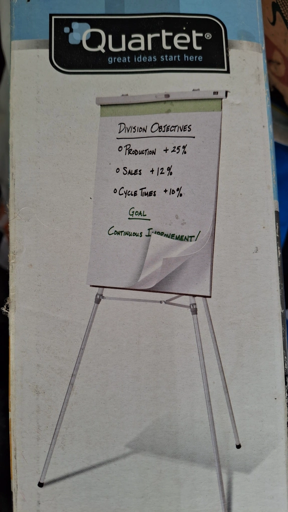 Selling a Quartet heavy-duty flipchart or display easel. It supports up to 35 lbs (16 kg) and is adjustable in height from 38-66 inches (97-168 cm). It also has a non-skid feature. Great for presentations or displays!