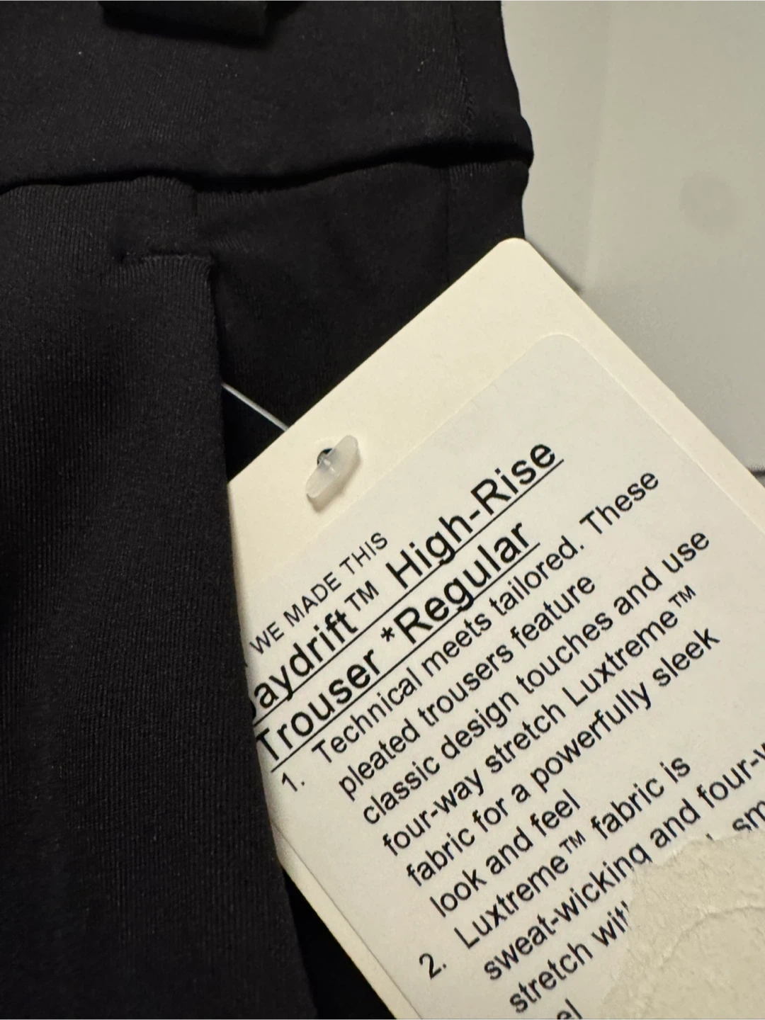 BRAND NEW WITH TAG Small black Lululemon Daydrift trousers have a high-rise and regular fit. They're made with Luxtreme™ fabric for a four-way stretch and sweat-wicking feel. These pants offer a classic design that's tailored for movement and comfort.
