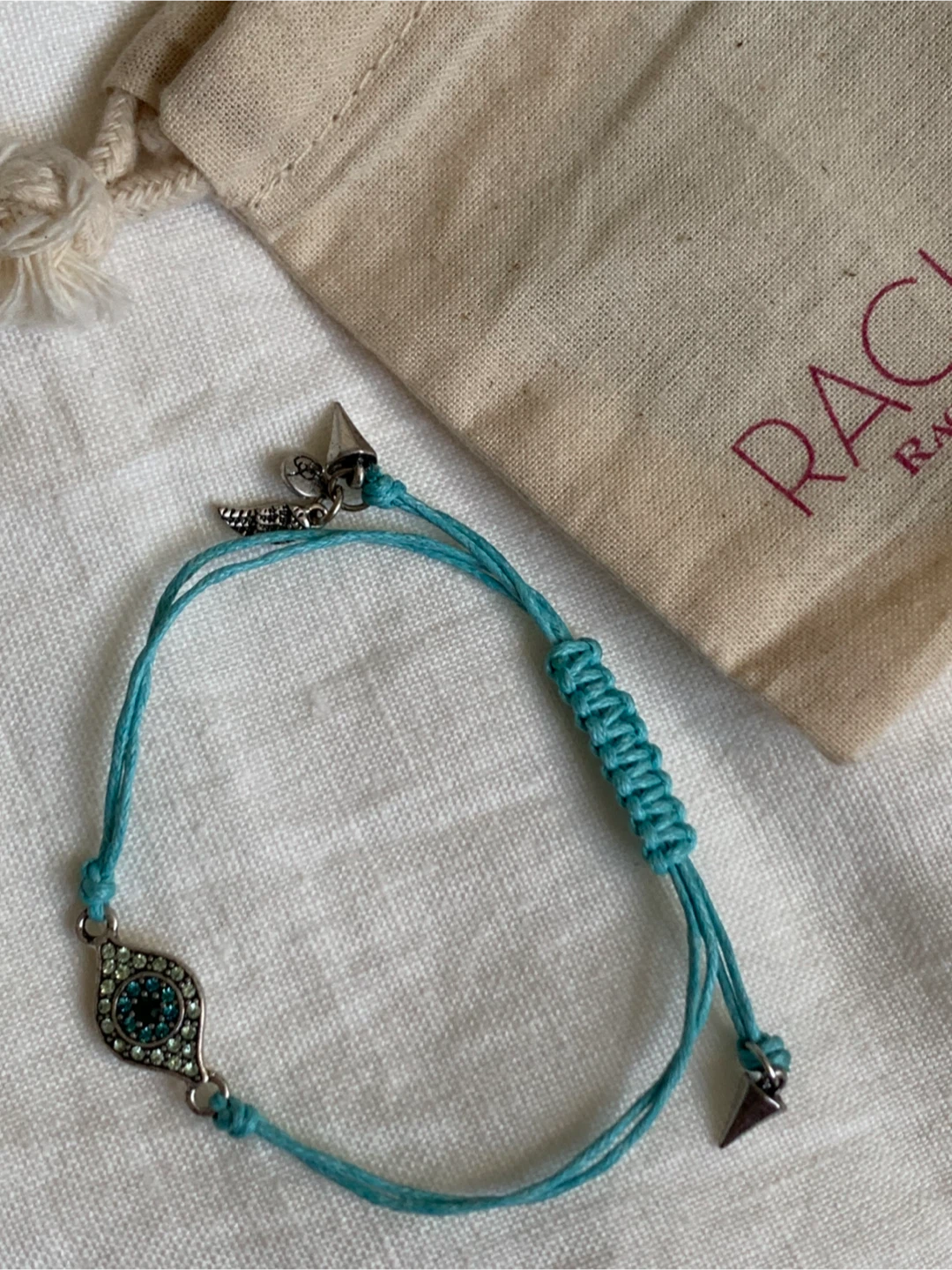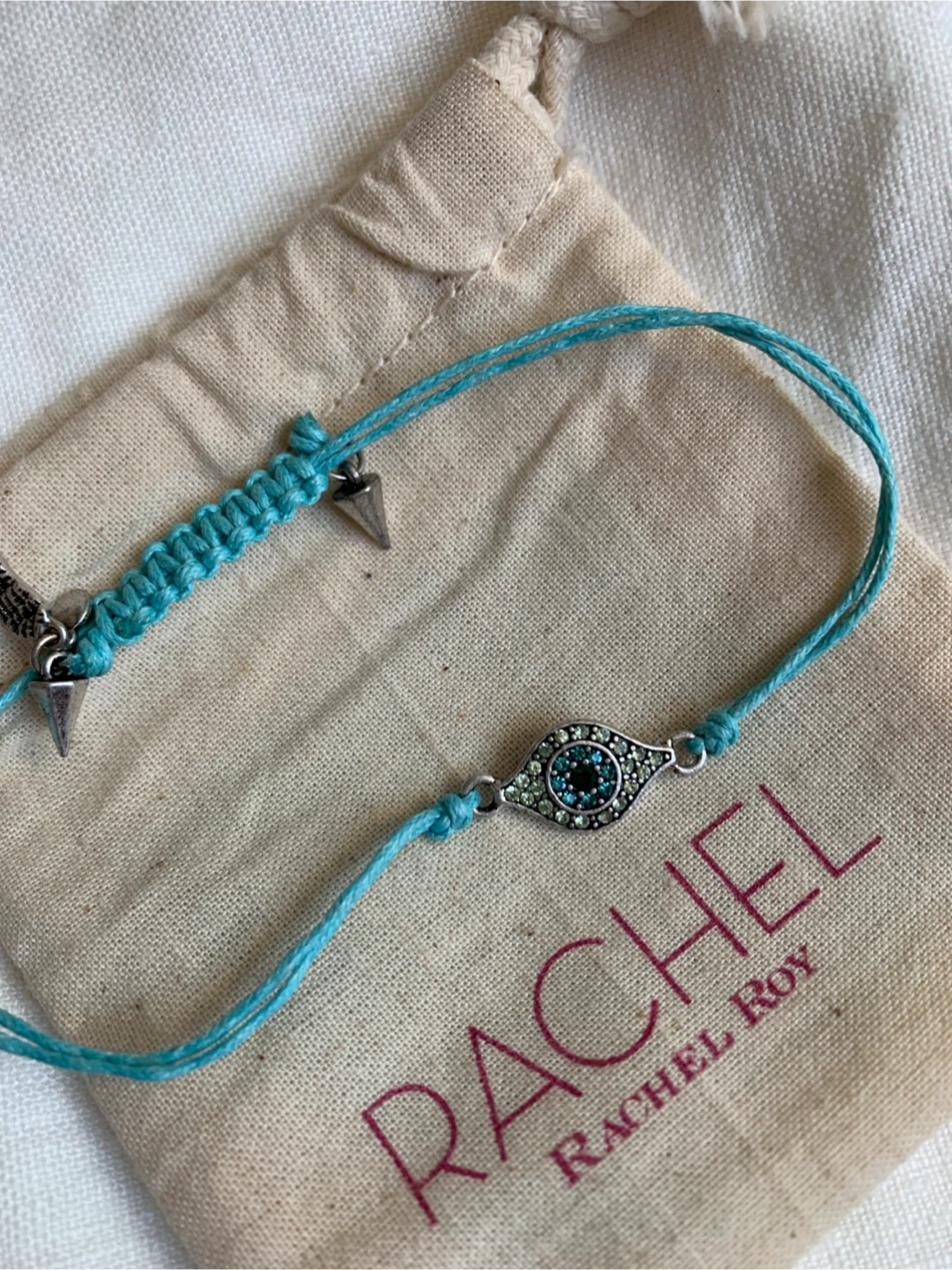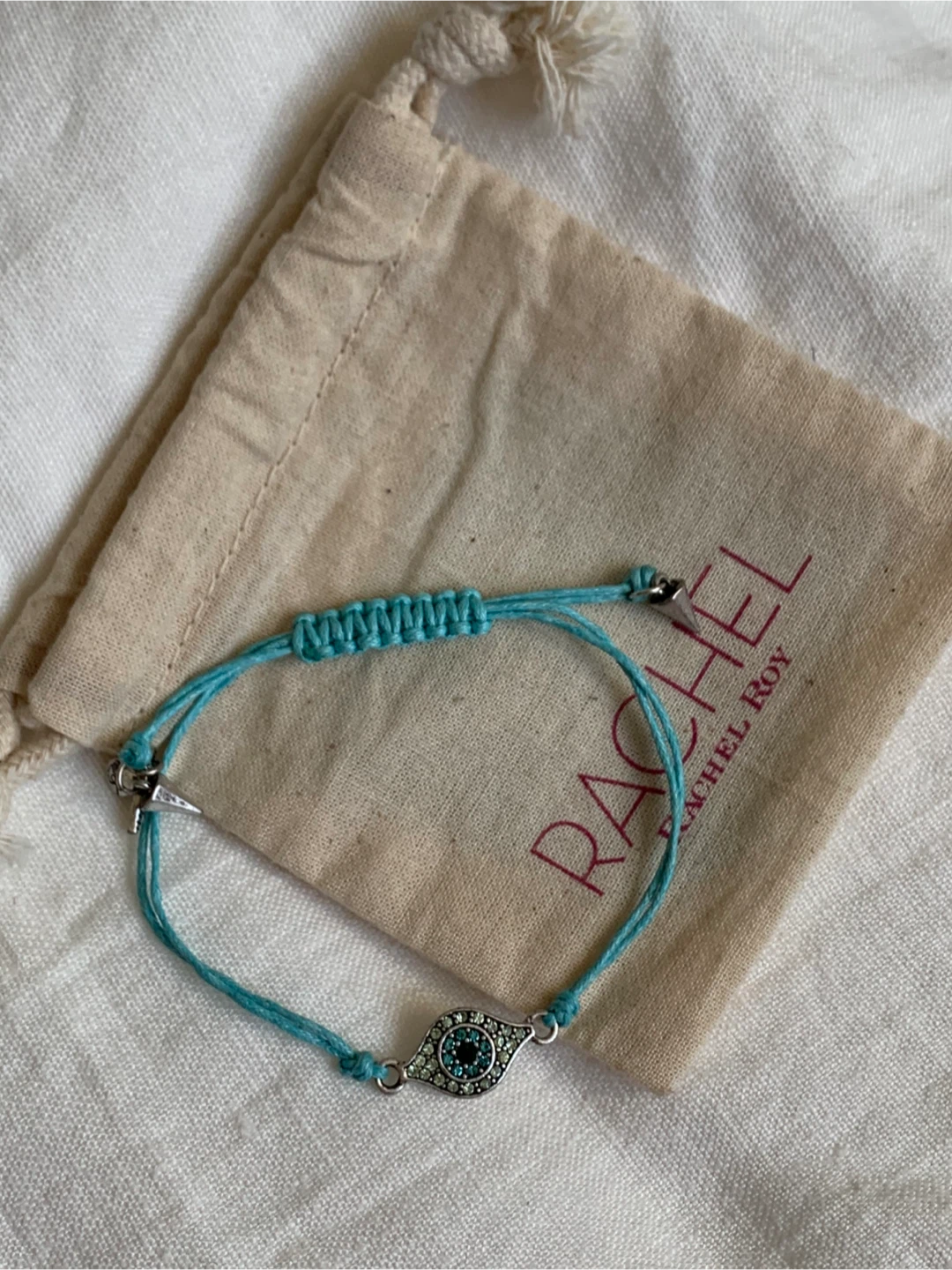 👉🏻Cash only. Msg to schedule pickup, thx 👉🏻Near Queen St West and Niagara St 👉🏻First come first serve •Cute Rachel Roy bracelet with an 🧿evil eye design. • Adjustable amulet bracelet for protection & good fortune. •Perfect for everyday wear. •Brand new, never been used, comes in a cloth bag. Giftable💝 item. •Smoke/pet free home•