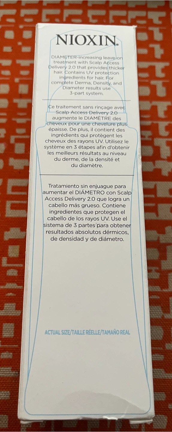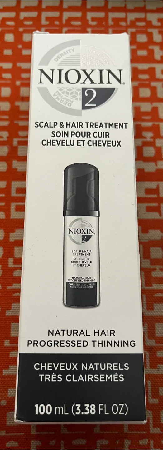 This Nioxin Scalp & Hair Treatment is part of the System 2 for natural hair with progressed thinning. It's designed to deliver thicker-looking hair and provides UV protection. It contains methyl nicotinate which can cause temporary redness.