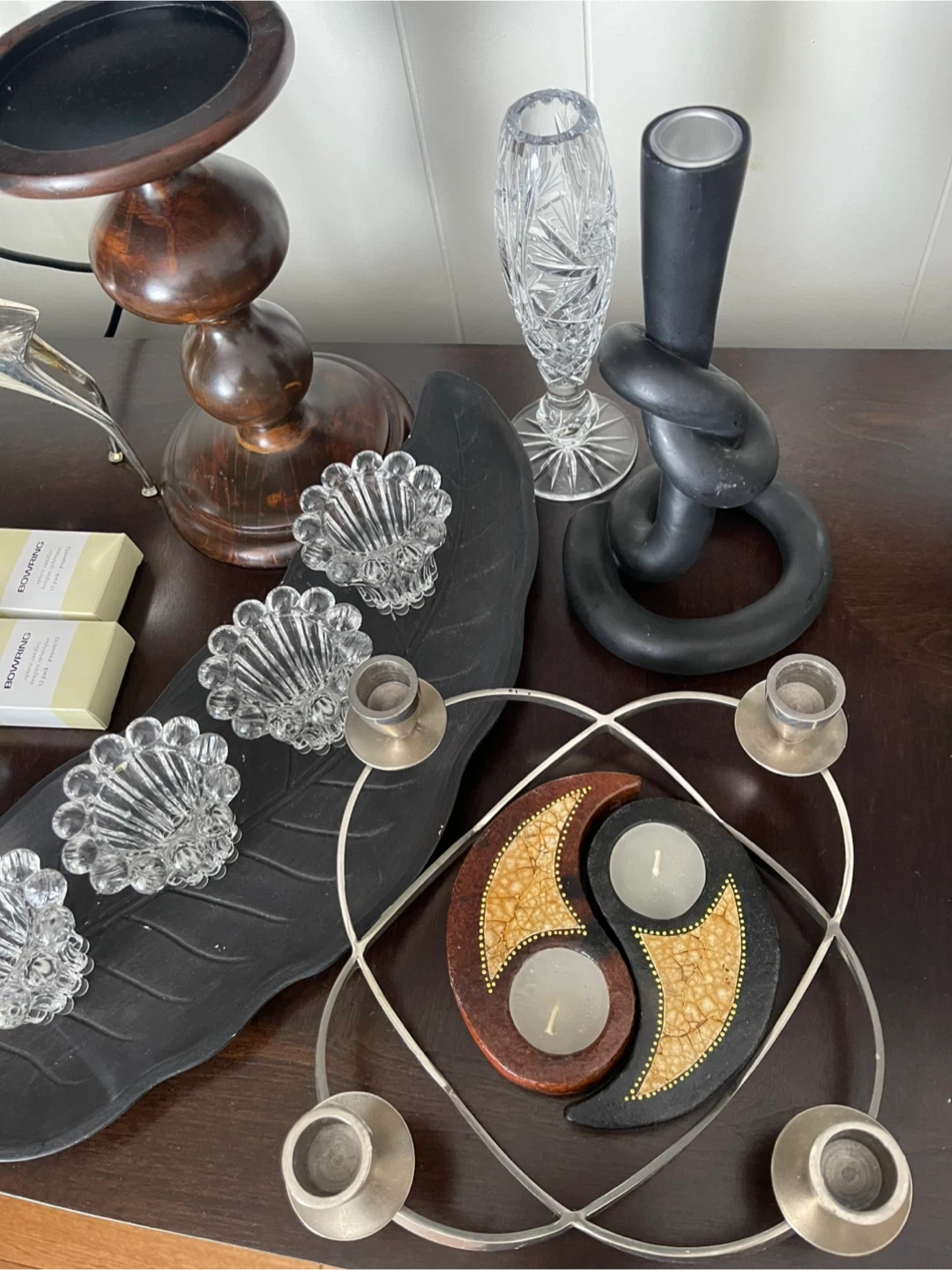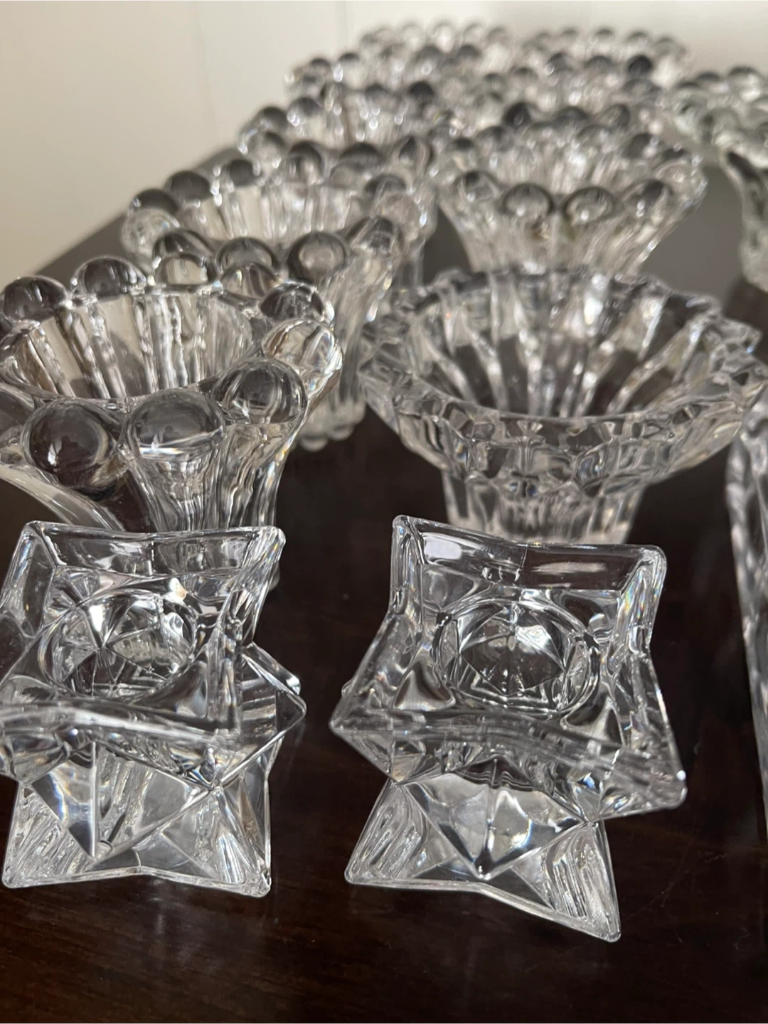 Add a touch of sparkle to your home with this collection of various vintage crystal candle holders. This set includes an assortment of candle holders that are in good condition, perfect for creating a cozy atmosphere in any room.