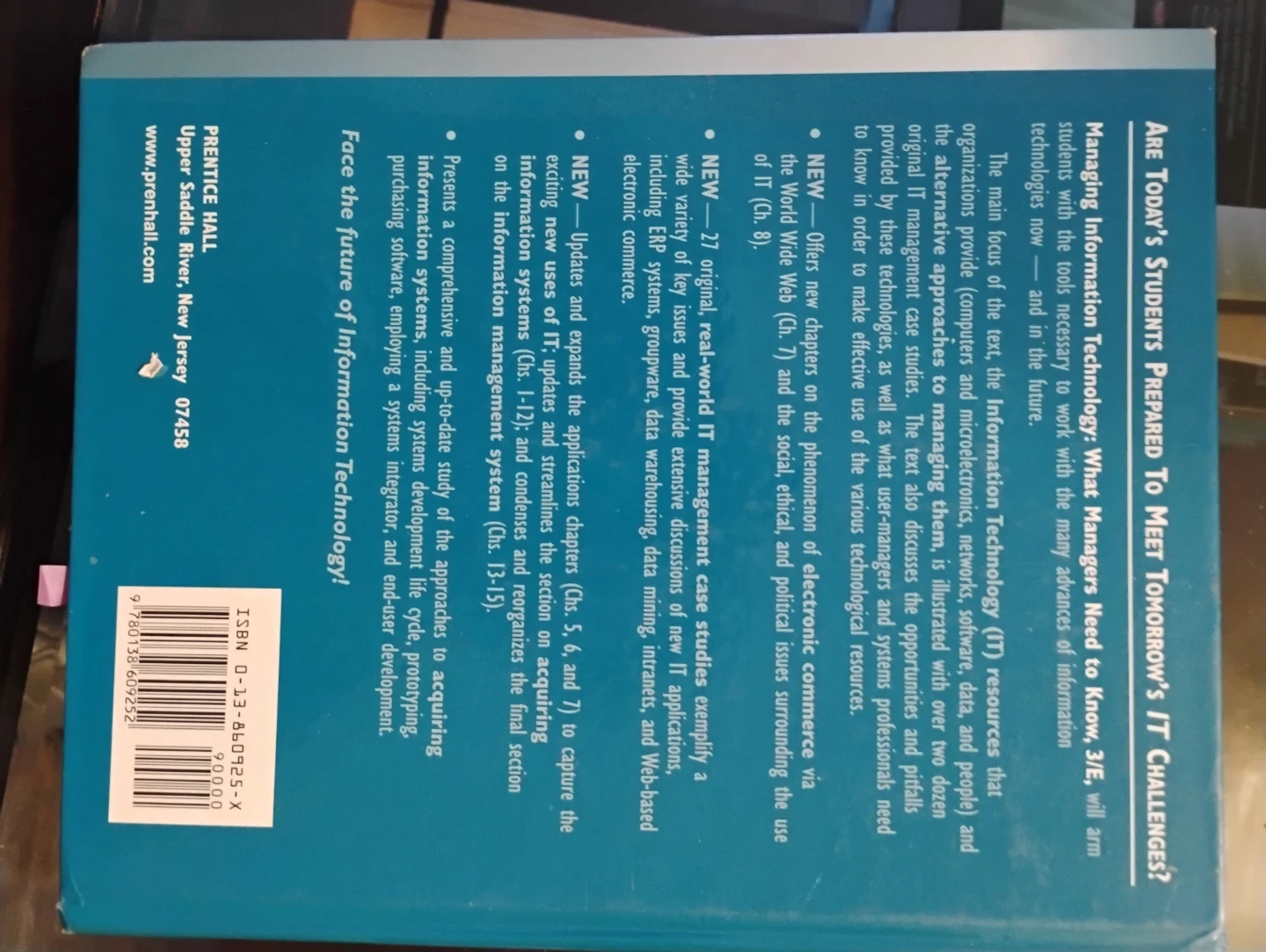 Third Edition textbook covering information technology management. It presents comprehensive and up-to-date study of the approaches to acquiring, purchasing software, and employing a systems integrator. Explains concepts for effective decision-making in IT.