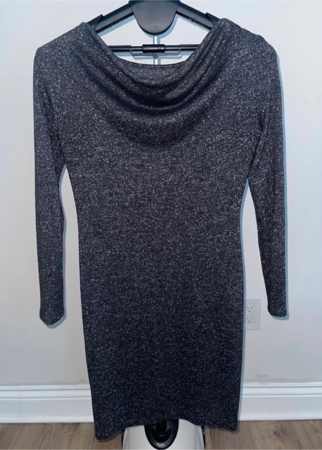 Worn a few times, in great condition. Size US L, fits up to size XL. Chic long sleeve dress by Esprit. Charcoal color with a shimmering/speckled pattern. Length is 37 inches and pit to pit measures 20.5 inches.