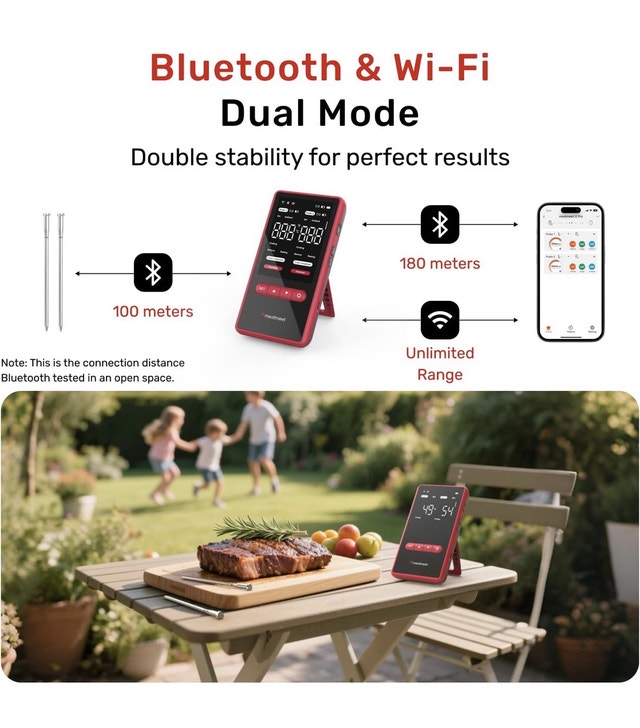 This is a brand new Meatmeet X Pro wireless meat thermometer with dual Wi-Fi capabilities, perfect for grilling and cooking enthusiasts. It offers precise temperature monitoring and convenient wireless connectivity. Features include: Dual probe support, Wi-Fi and Bluetooth connectivity, Smart app integration, Real-time temperature display, and Long battery life. Get ready to elevate your cooking game with this thermometer. Happy cooking! The ad is still up, so it's still available.