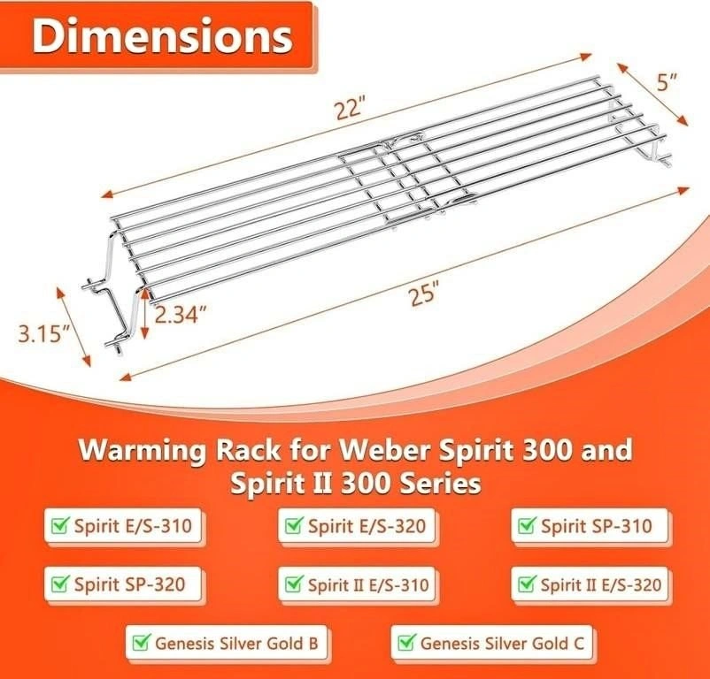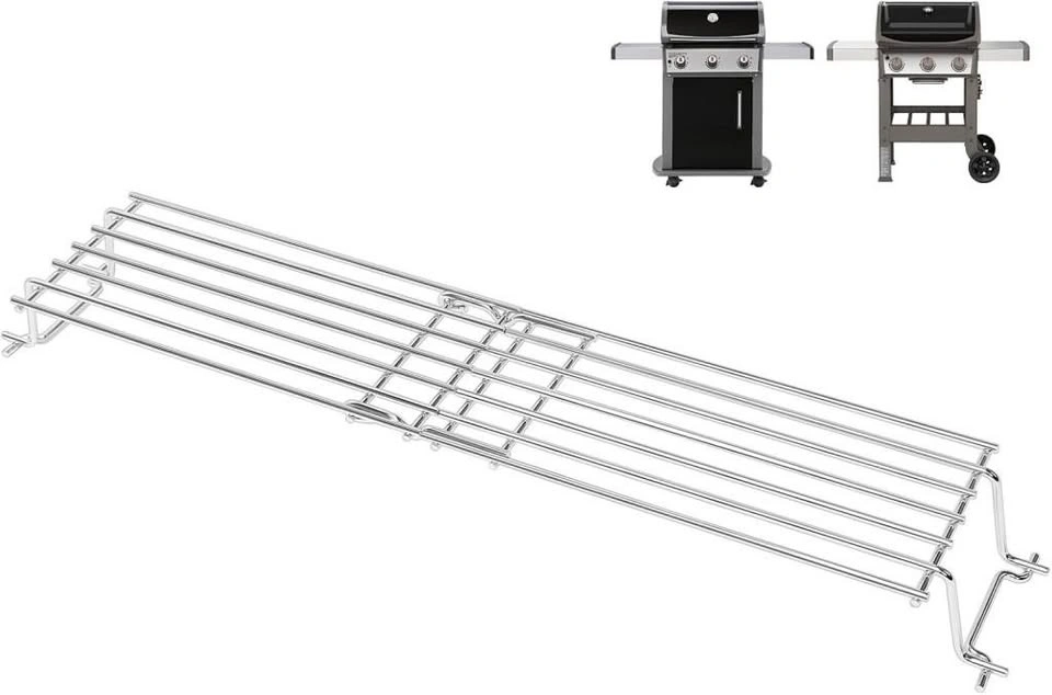 Quli Metal Foldable Stainless Steel Warming Rack for Weber Spirit 300 and GS4 Spirit II 300 Series Gas Grills with Front Control Knobs, 7641 Grill Upper Rack for Weber Genesis Silver Gold B/C Grills