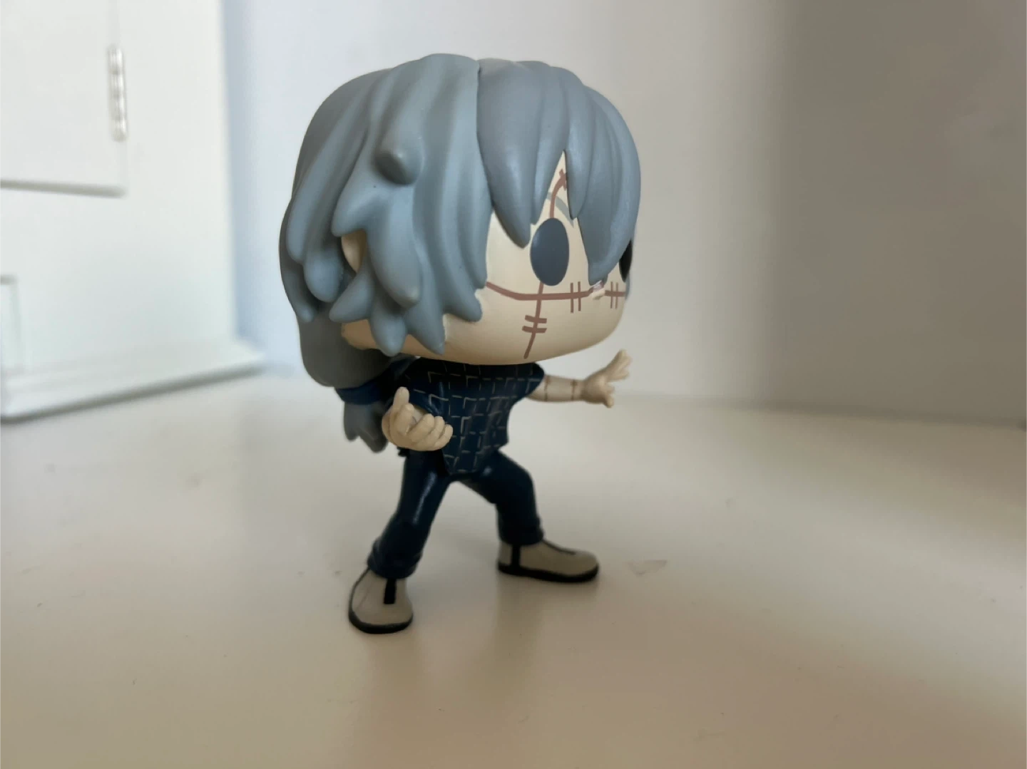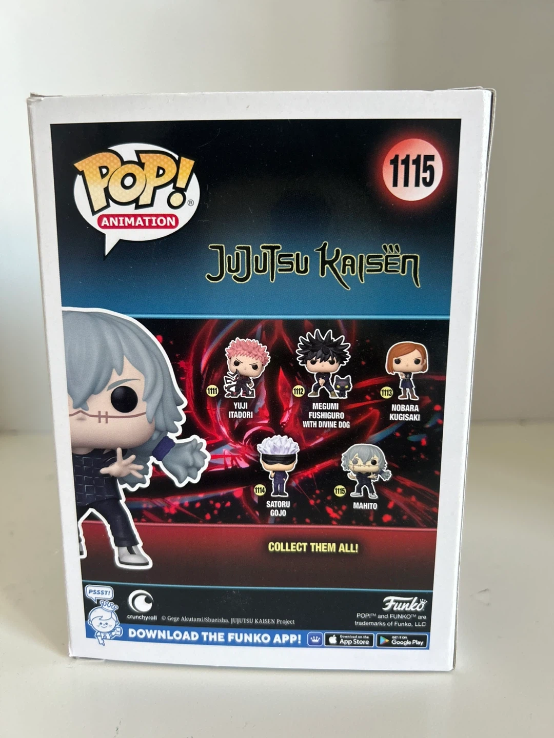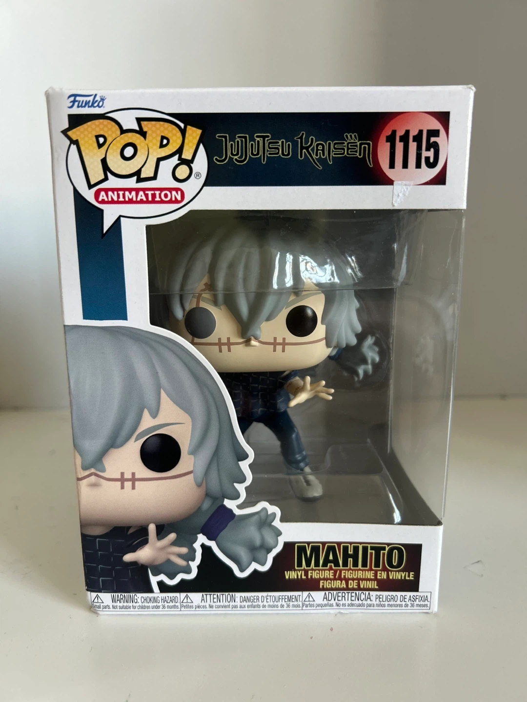 This is a Funko Pop! Animation figure of Mahito, number 1115. It depicts the character with his signature grey hair and stitched face details. Includes original box.