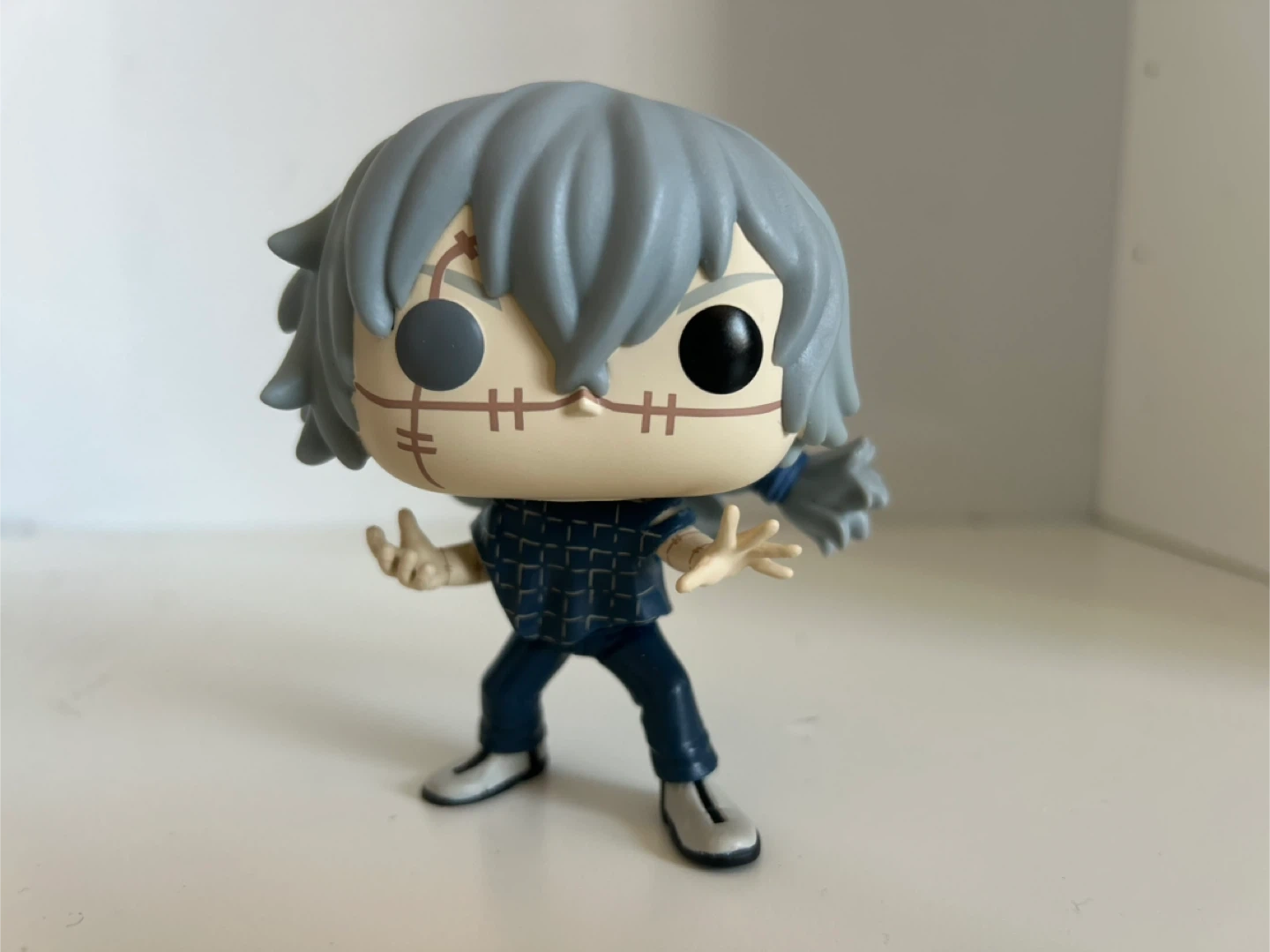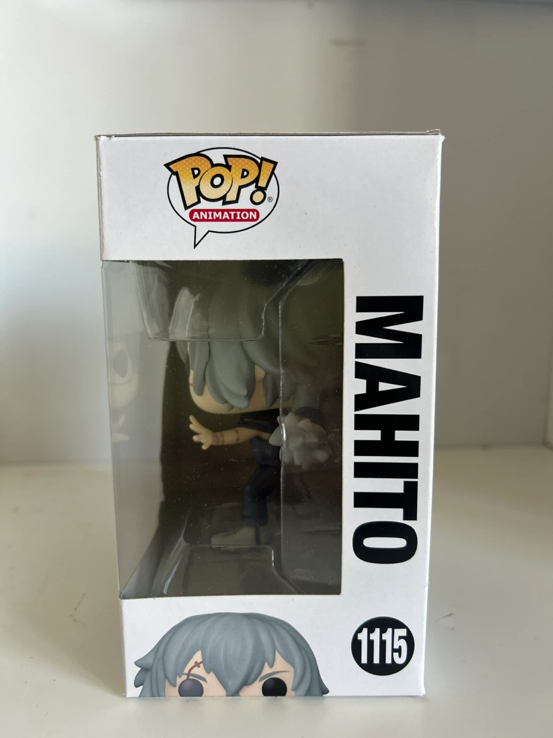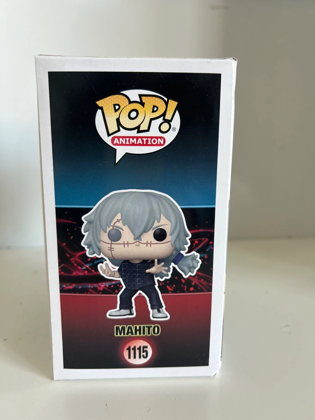 This is a Funko Pop! Animation figure of Mahito, number 1115. It depicts the character with his signature grey hair and stitched face details. Includes original box.