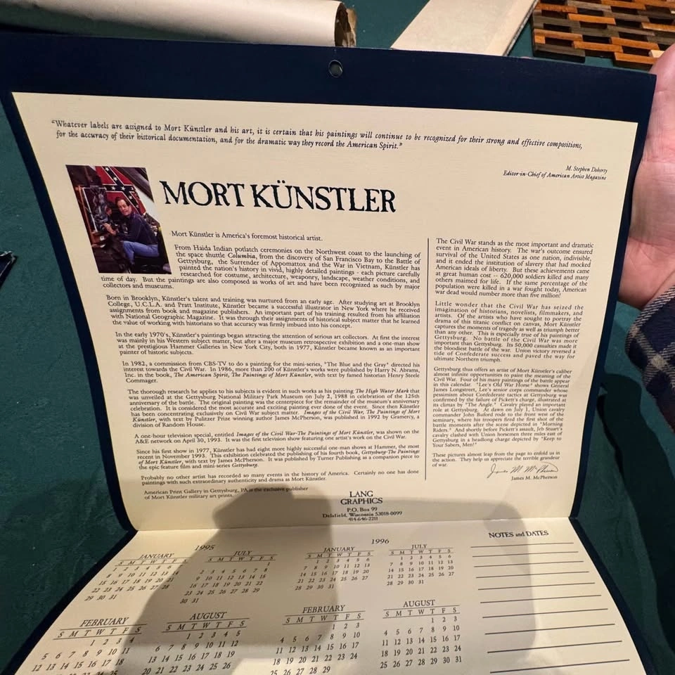 Original 1995 Mort Künstler Civil War calendar, published by Lang Graphics.