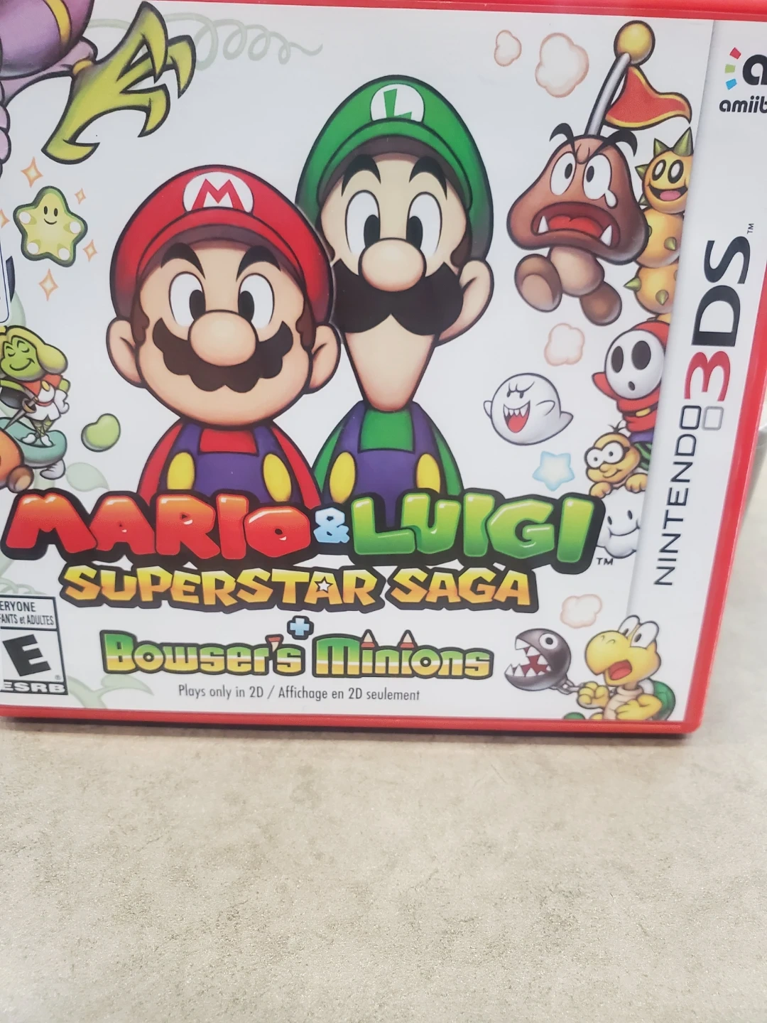 This is the Mario & Luigi Superstar Saga + Bowser's Minions game for the Nintendo 3DS. It's a role-playing game featuring Mario and Luigi. The game includes the game cartridge and case.