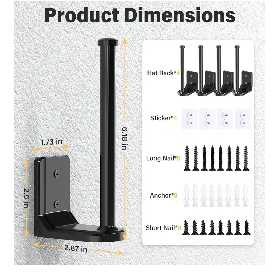 Selling a set of new adhesive hat hooks in black! Includes 4 hat racks. Perfect for organizing baseball caps and hats on the wall. Pickup in River Grove