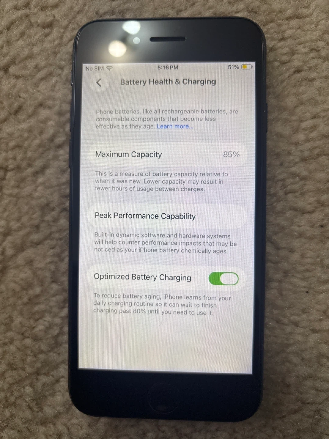 iPhone SE 3 2022Battery Health 85% Maximum Capacity