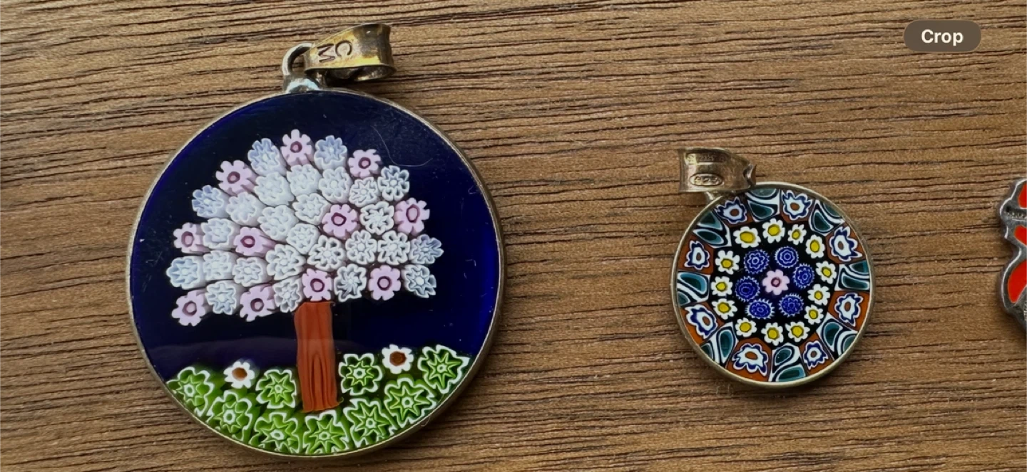 - Fine Murano Glass pendant, all non-glass parts crafted in .925 sterling silver by Italian artisans. This Italian pendant with Murano Glass Millefiori represents the world's finest glass jewelry designs and sterling silver craftsmanship. $60obo