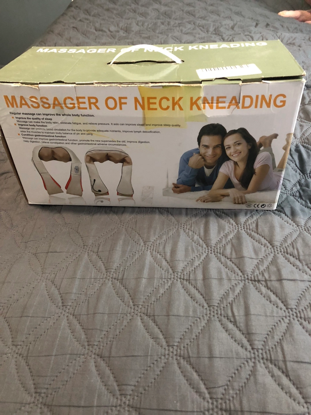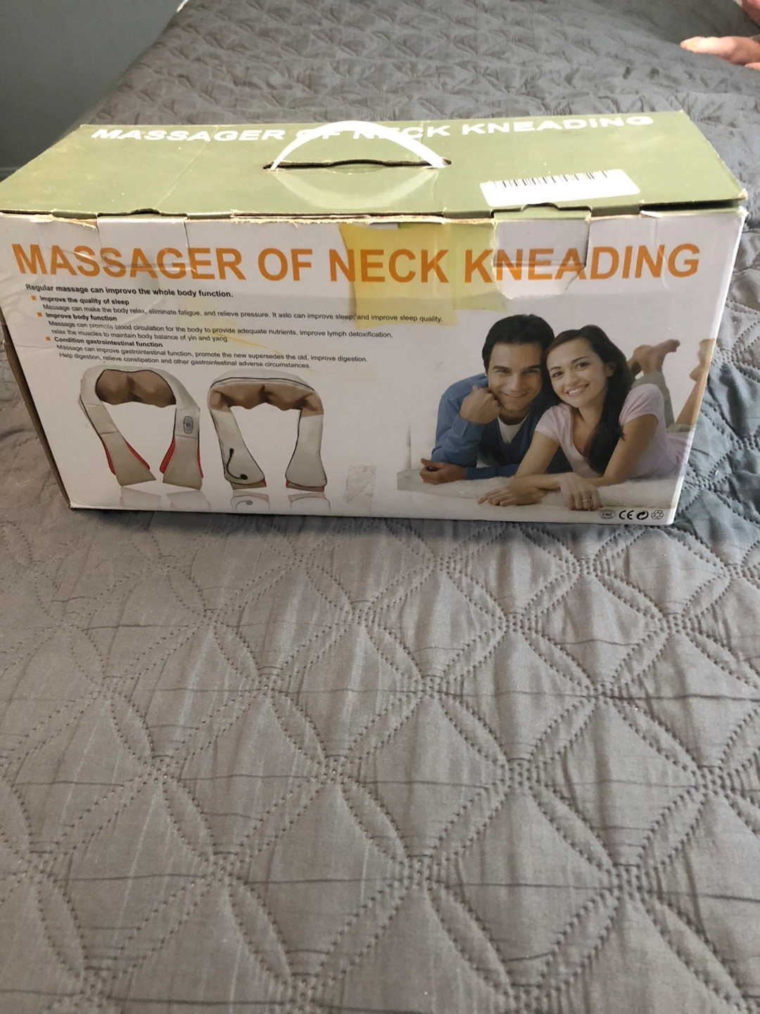 I'm selling a Massager of Neck Kneading. It can help you relax, eliminate fatigue, and relieve pressure. It also can improve sleep quality. Massage can optimize blood circulation for the body to provide adequate nutrients, improve lymph detoxification, and improve the quality of your parts. Massage can improve intestinal function, promote the new supersedes the old, improve digestion. Box is included