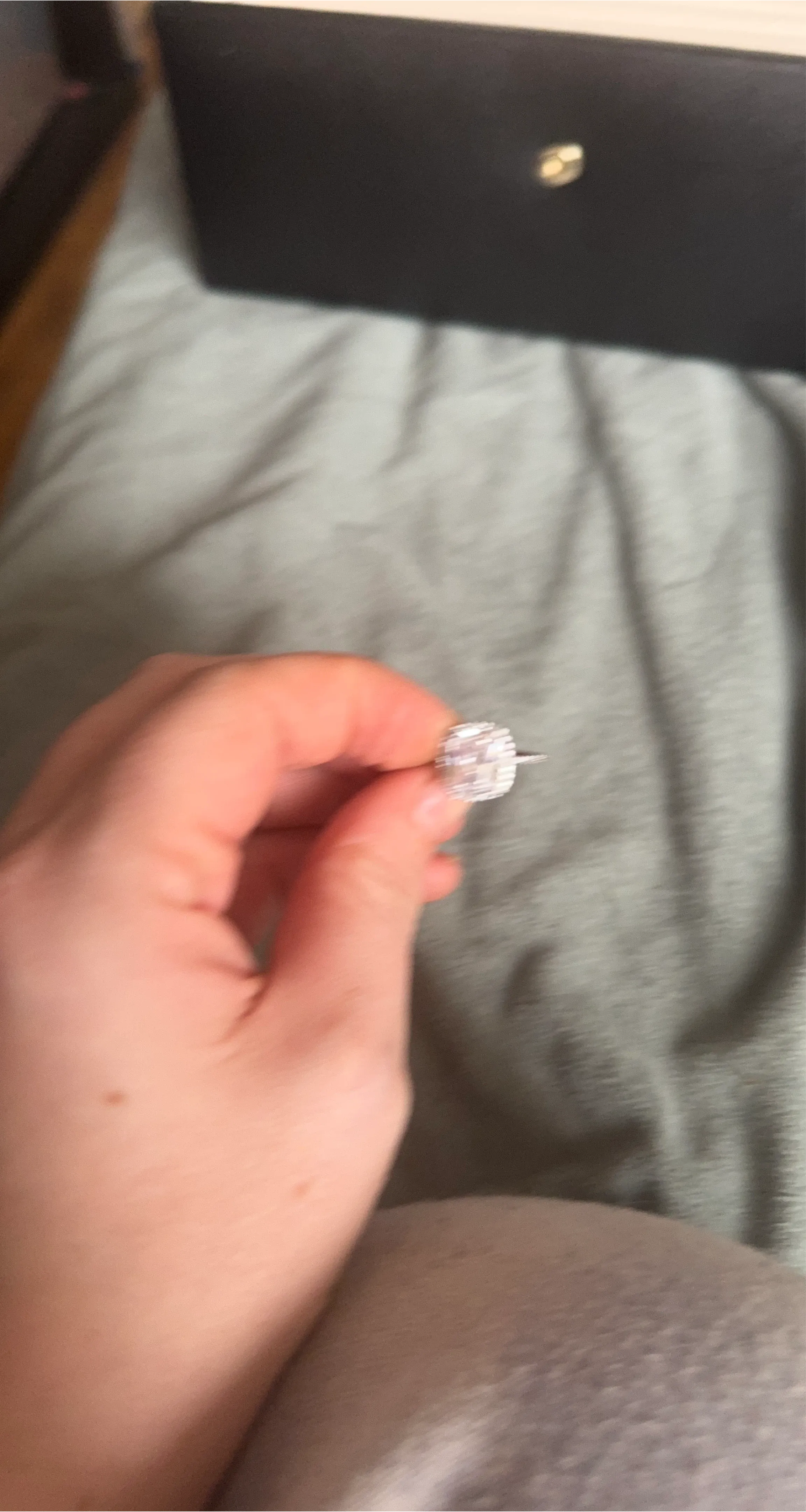 This ring features a sparkly cushion-cut stone. It's a lovely accessory for special occasions or everyday wear. The band is made of silver-toned metal.