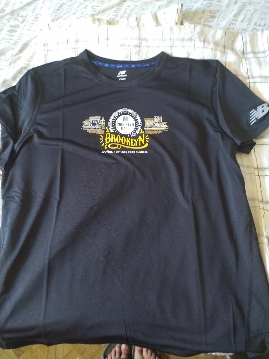 Black New Balance women's t-shirt for the Brooklyn Half Marathon. Size XL. Made in Thailand. 100% polyester.