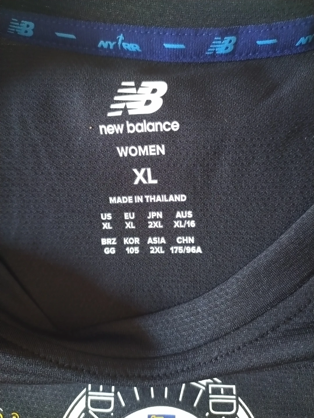 Black New Balance women's t-shirt for the Brooklyn Half Marathon. Size XL. Made in Thailand. 100% polyester.