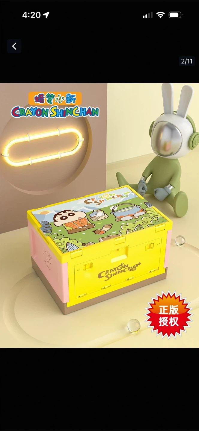This folding storage box features fun Crayon Shin-chan graphics. It's perfect for organizing toys or small items. The box folds flat for easy storage when not in use.