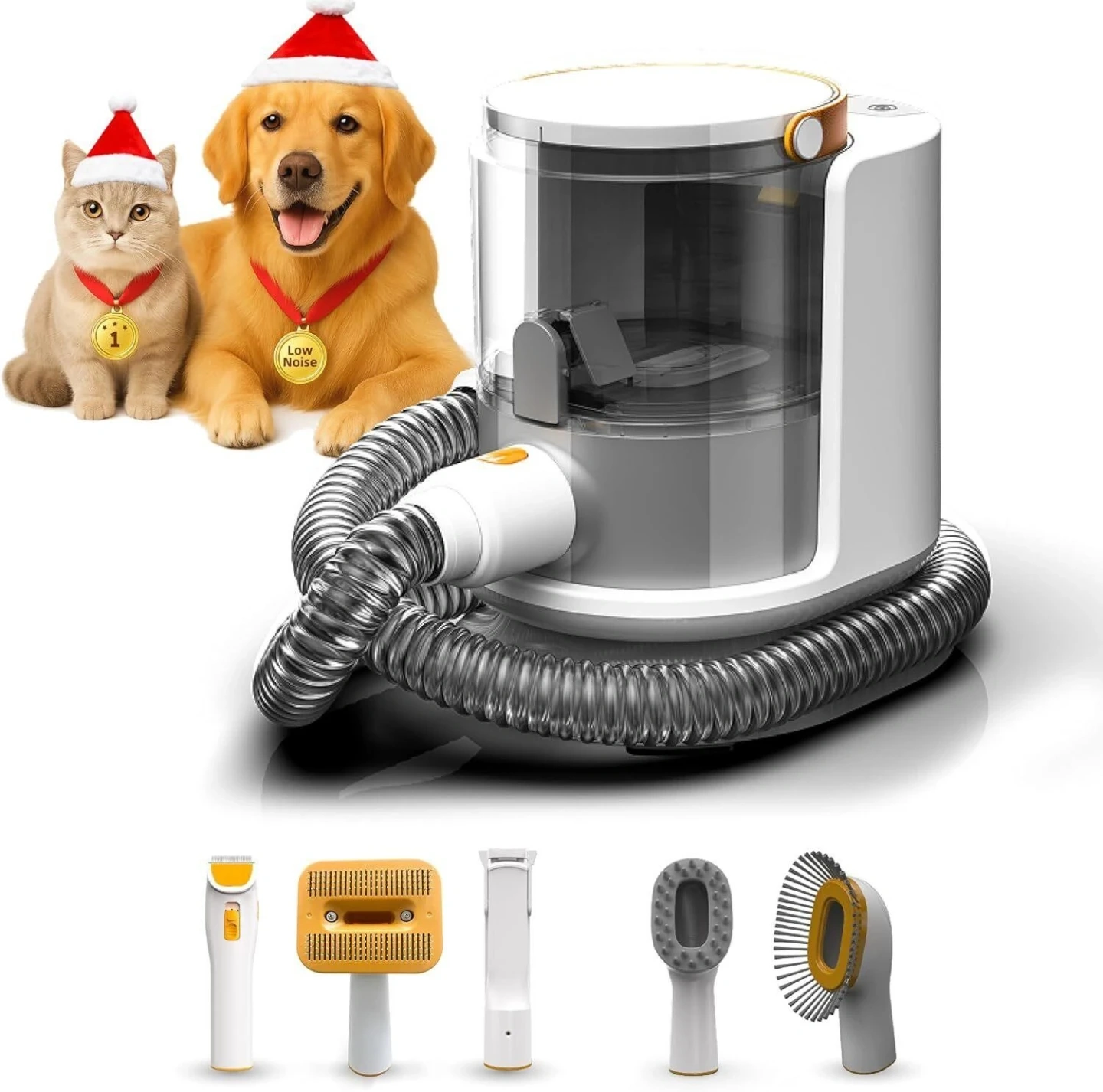 Effortless grooming for your pets, mess-free! This vacuum trimmer captures pet hair, dust, and allergens with its 5-stage filtration and H11 grade HEPA filter. Includes multiple grooming attachments for a complete styling experience. Low noise operation!