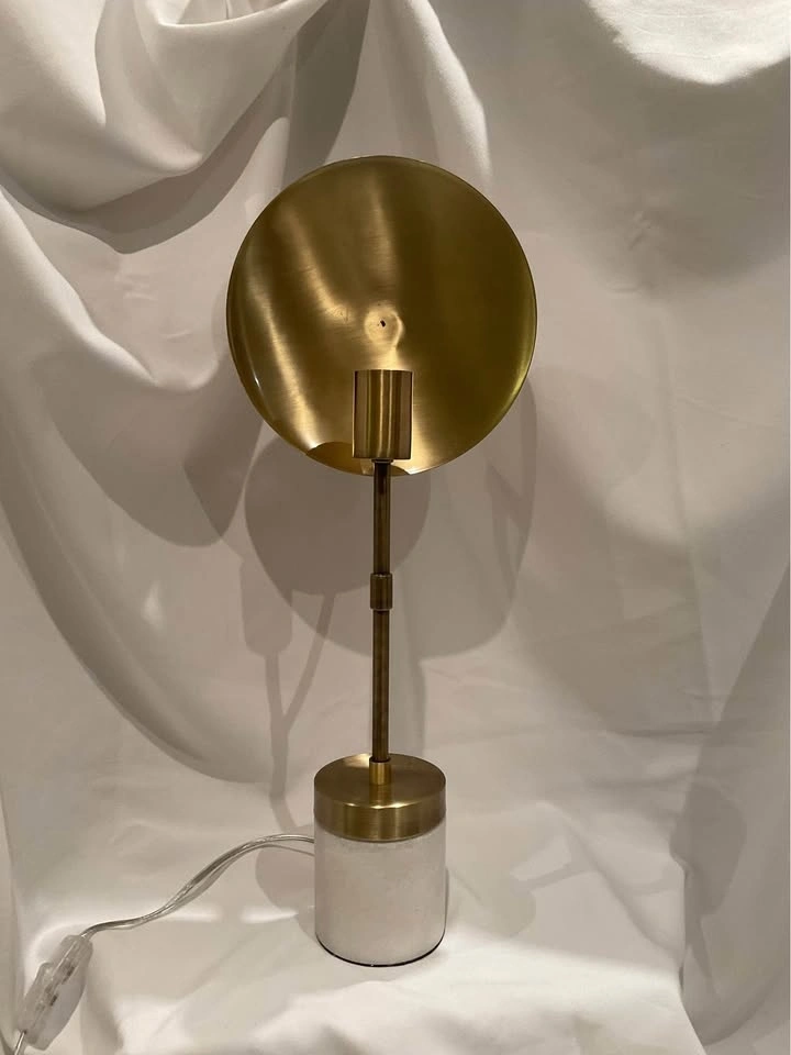 Stunning Renwil table lamp with inline switch. Antique brass with marble base. Lamp design inspired by 1920's glam. Height 22", Base 3 1/2", Disc 9". Good condition. Smoke & pet-free home. Cash only - Richmond Hill / Bathurst & King Rd.