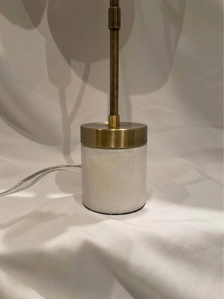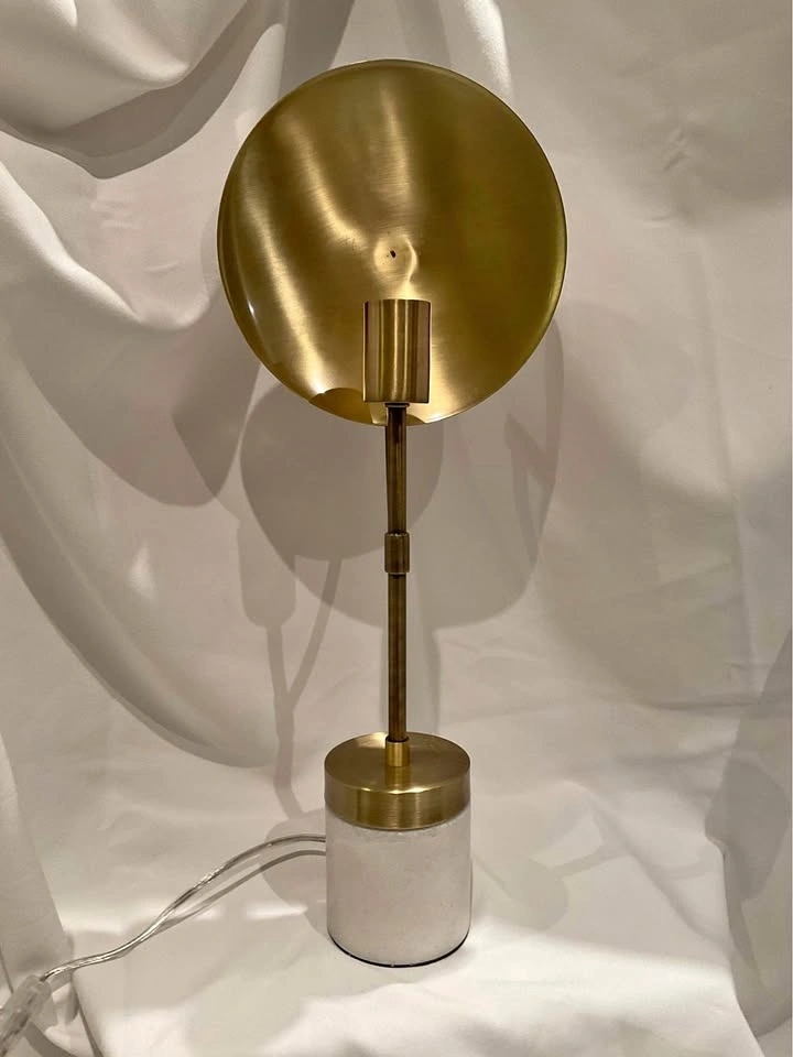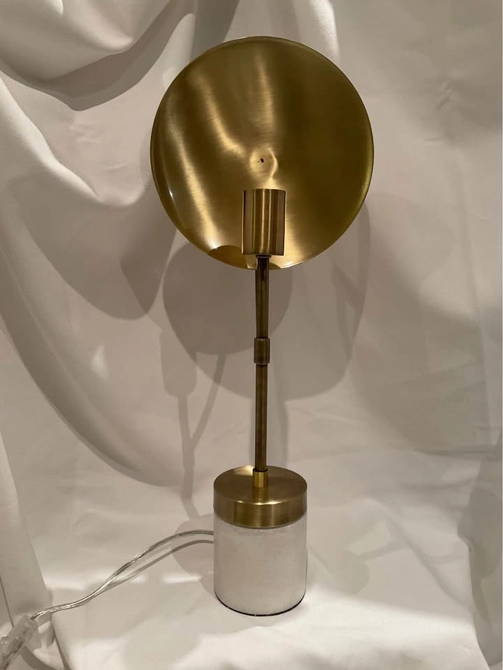 Stunning Renwil table lamp with inline switch. Antique brass with marble base. Lamp design inspired by 1920's glam. Height 22", Base 3 1/2", Disc 9". Good condition. Smoke & pet-free home. Cash only - Richmond Hill / Bathurst & King Rd.
