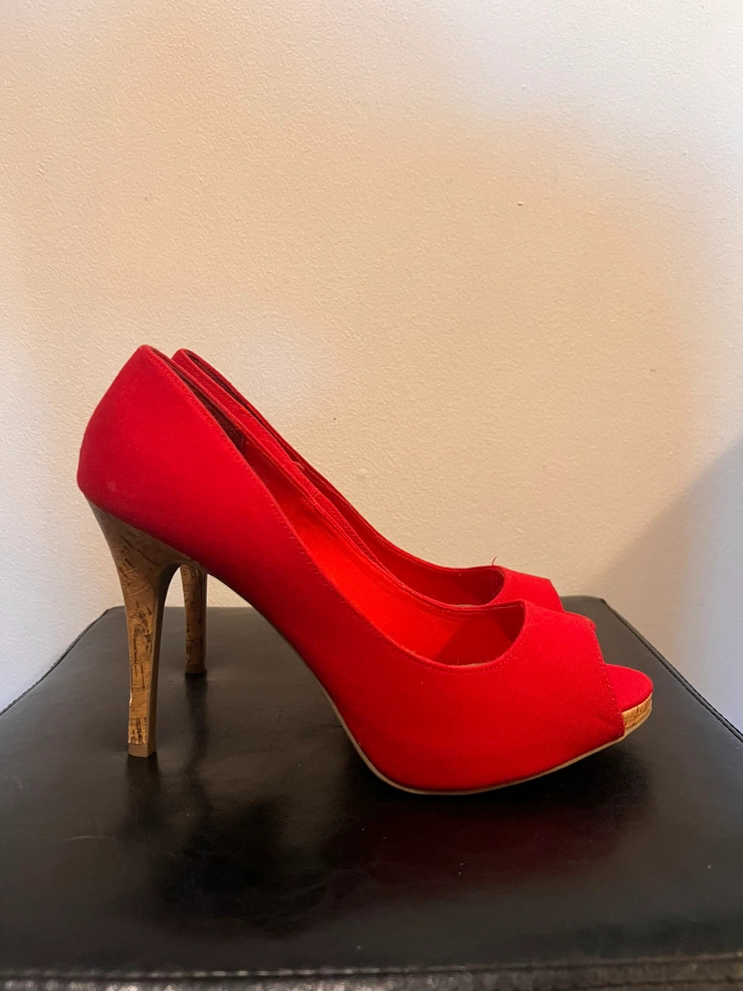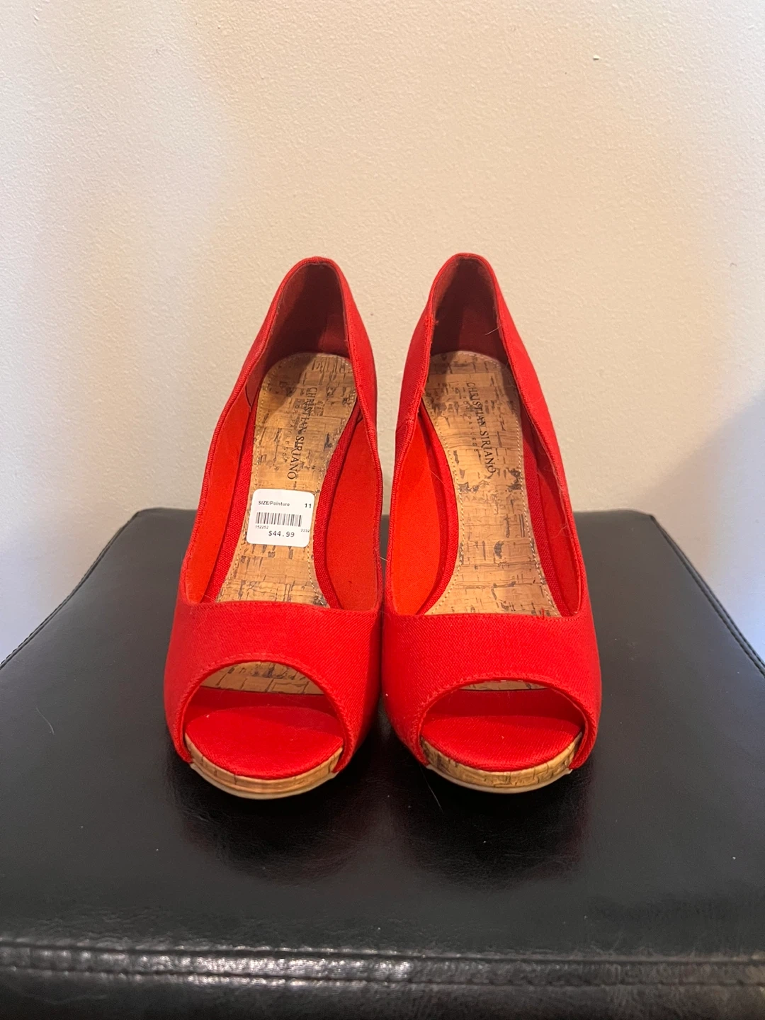 Selling a pair of Christian Siriano red heels in size 11! These never worn stylish heels feature a unique cork heel design. Originally priced at $44.99, they're a steal!