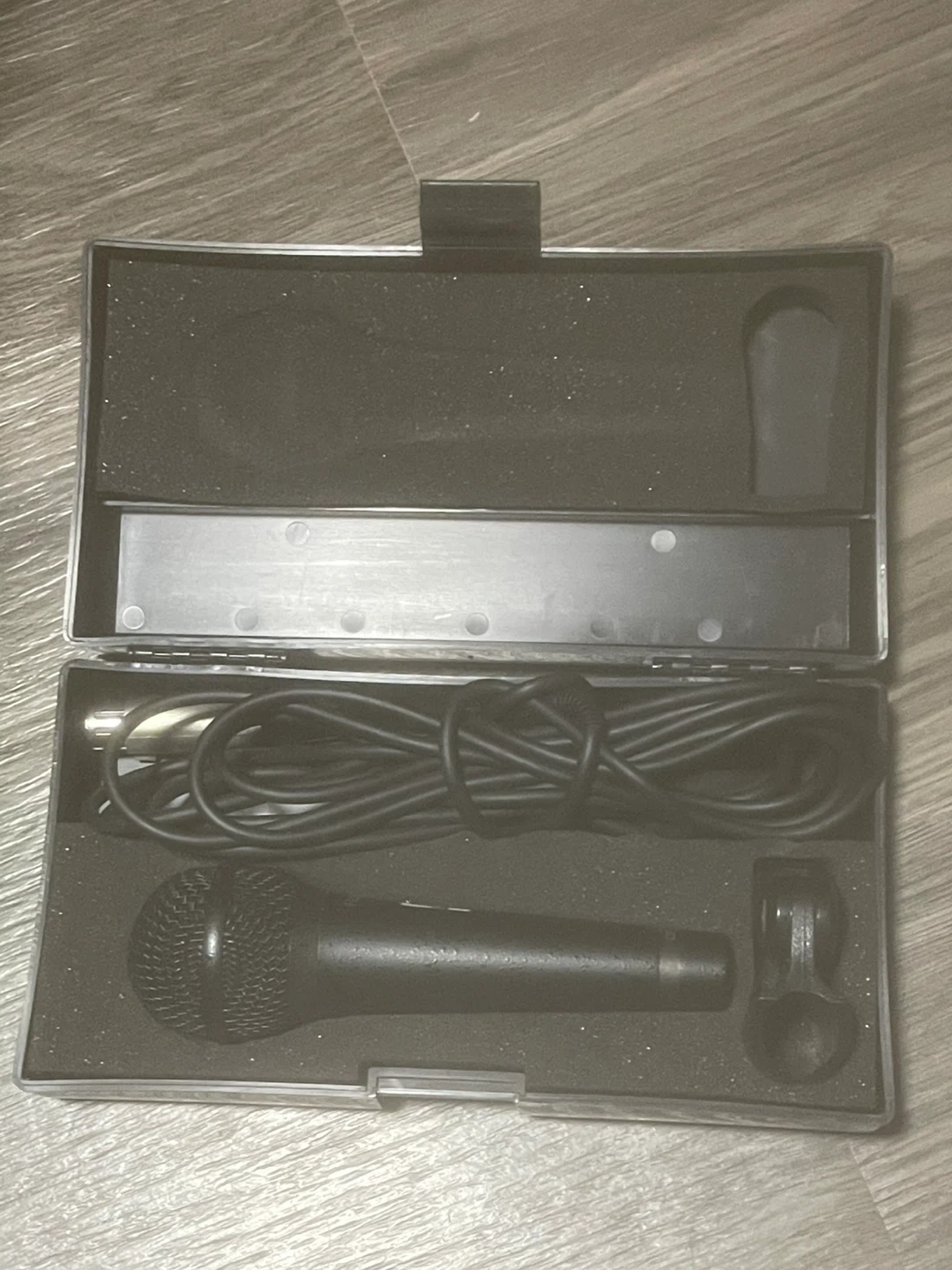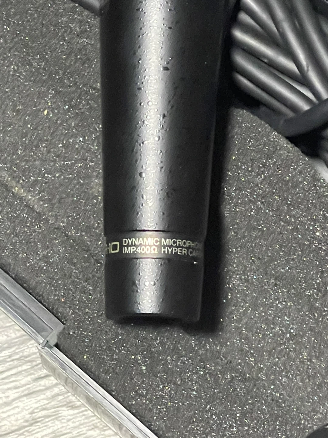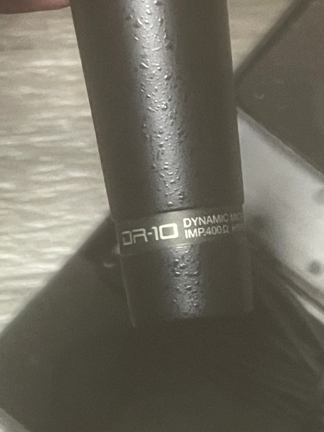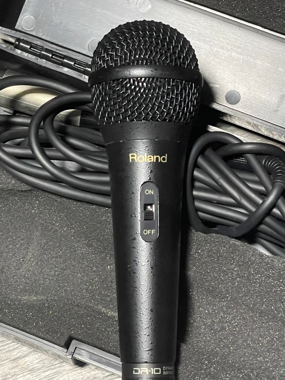 This is a Roland DR-10 dynamic microphone. It's a hyper cardioid model with a 400-ohm impedance. Includes the original case and cable!