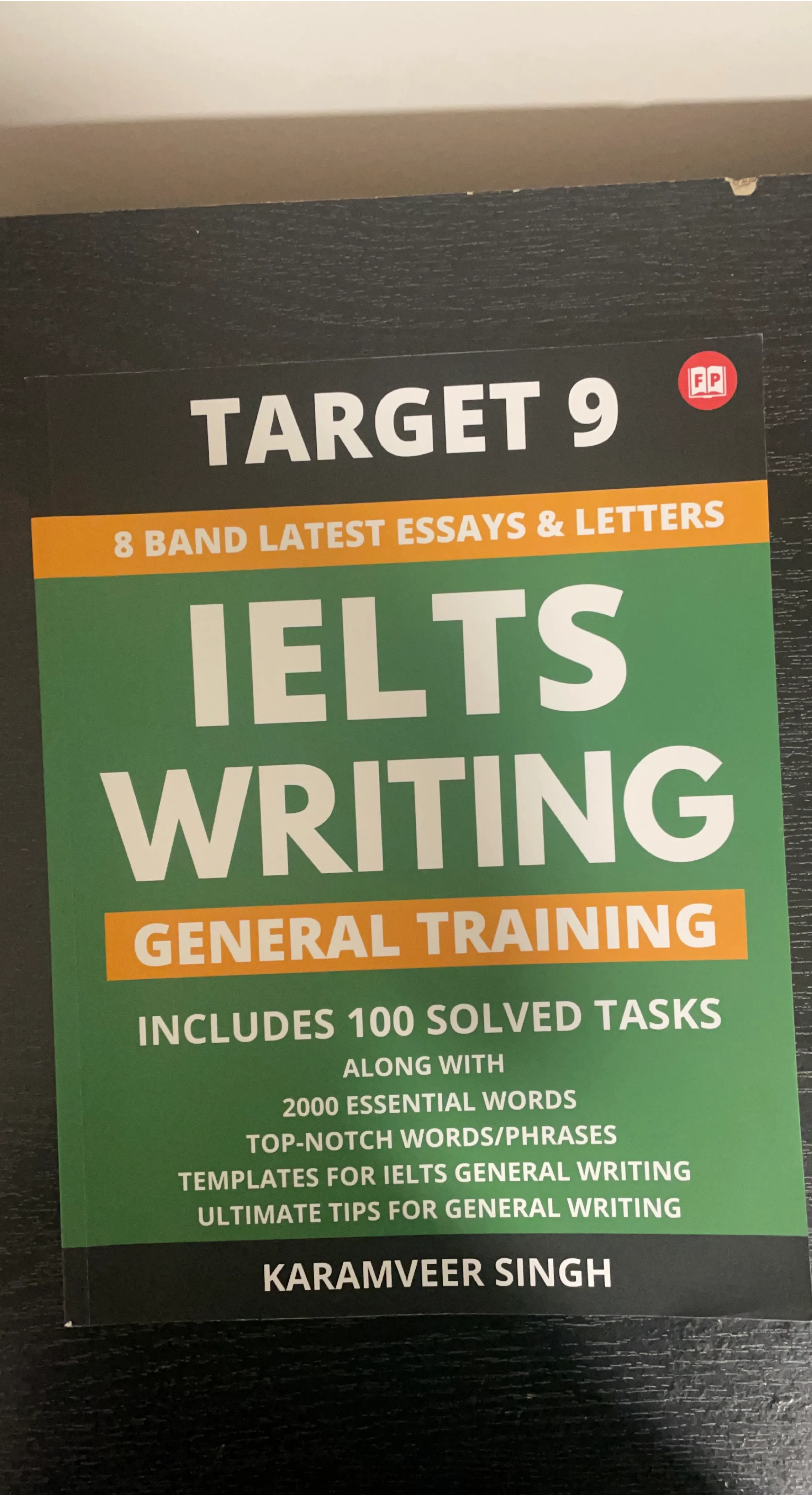 Selling a Target 9 IELTS Writing General Training book. It includes 100 solved tasks along with 2000 essential words, top-notch words/phrases, templates for IELTS general writing and ultimate tips for general writing. Perfect for anyone preparing for the IELTS exam!