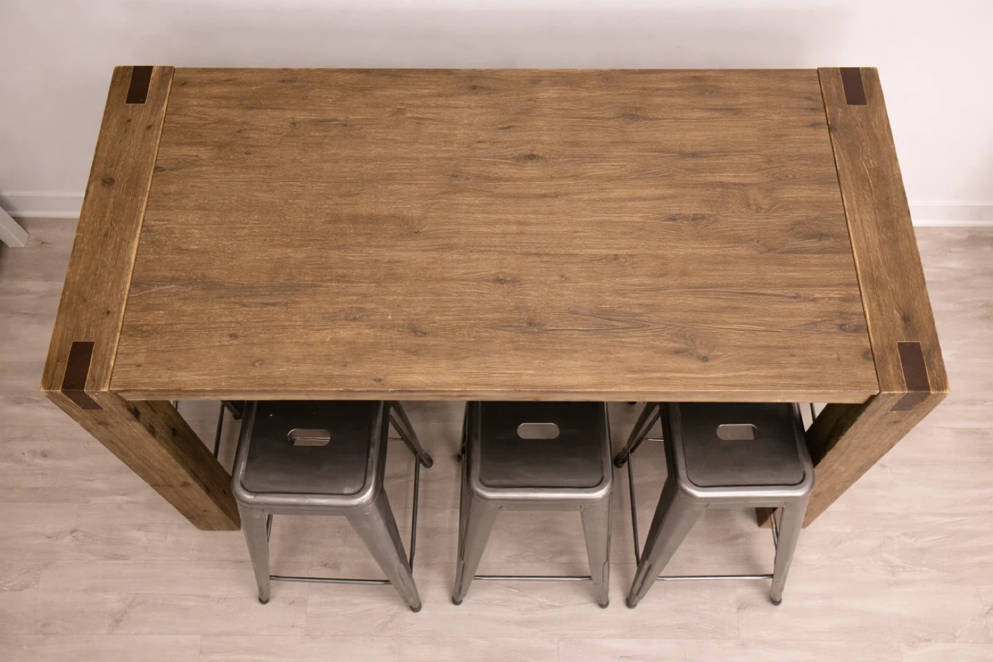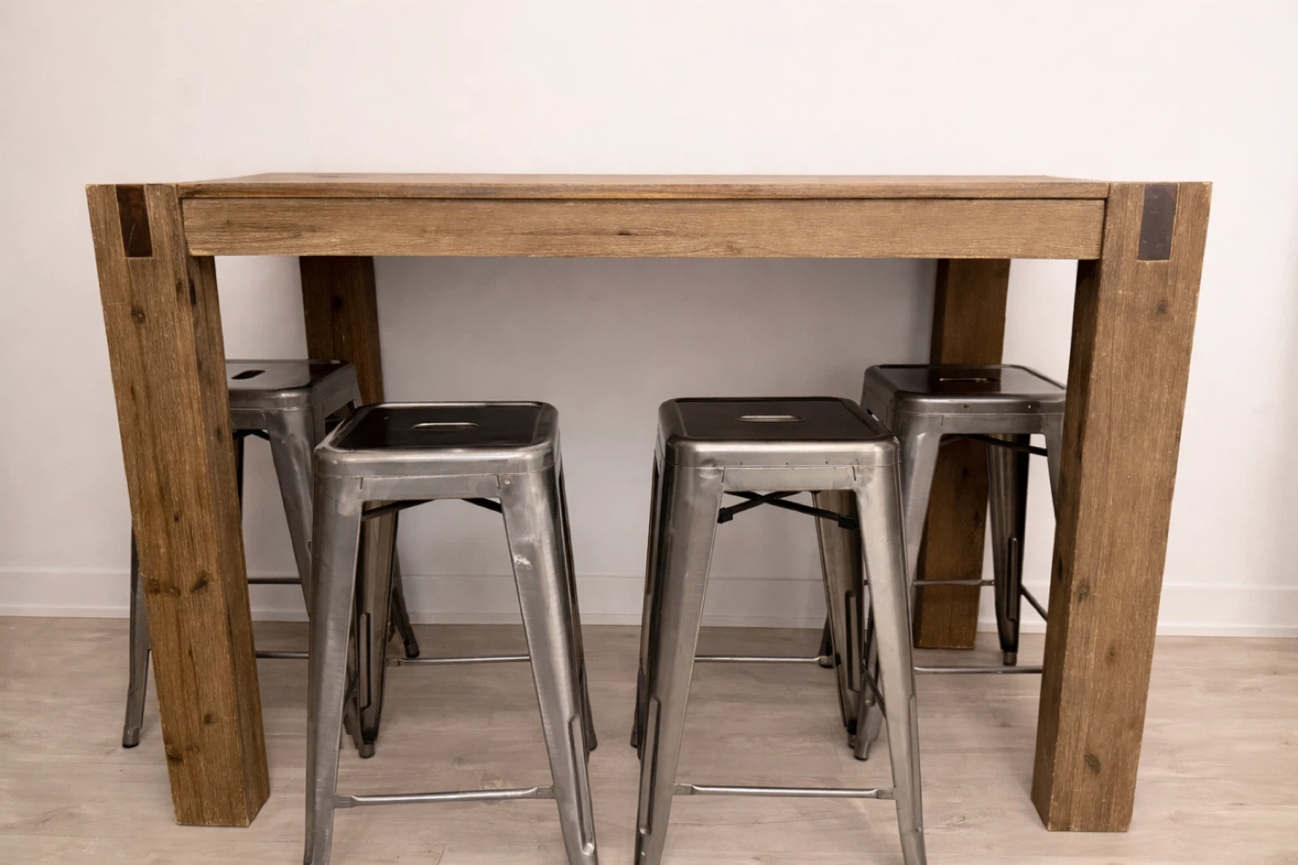 Rustic Wood Bar Table with 4 Metal Stools