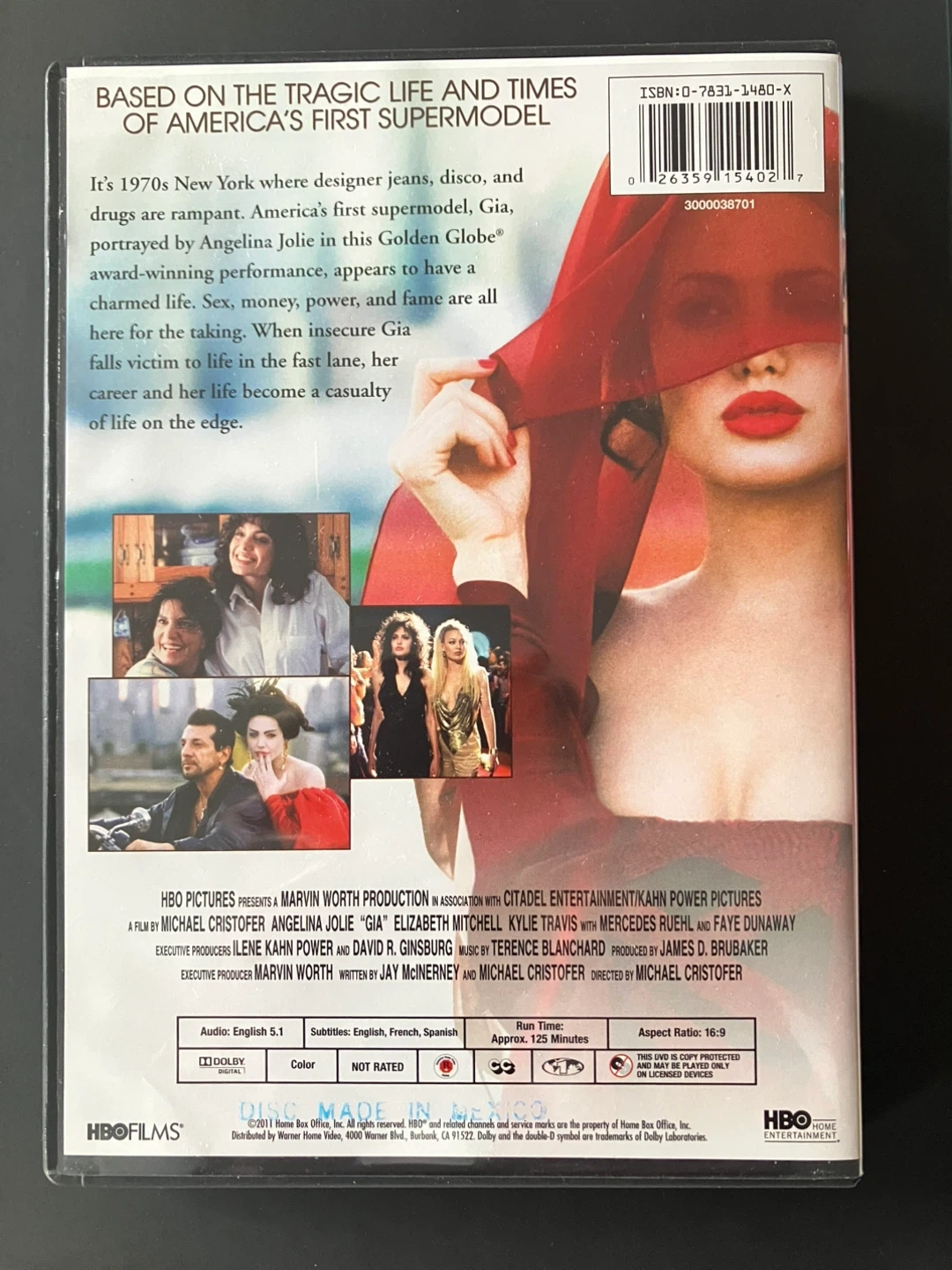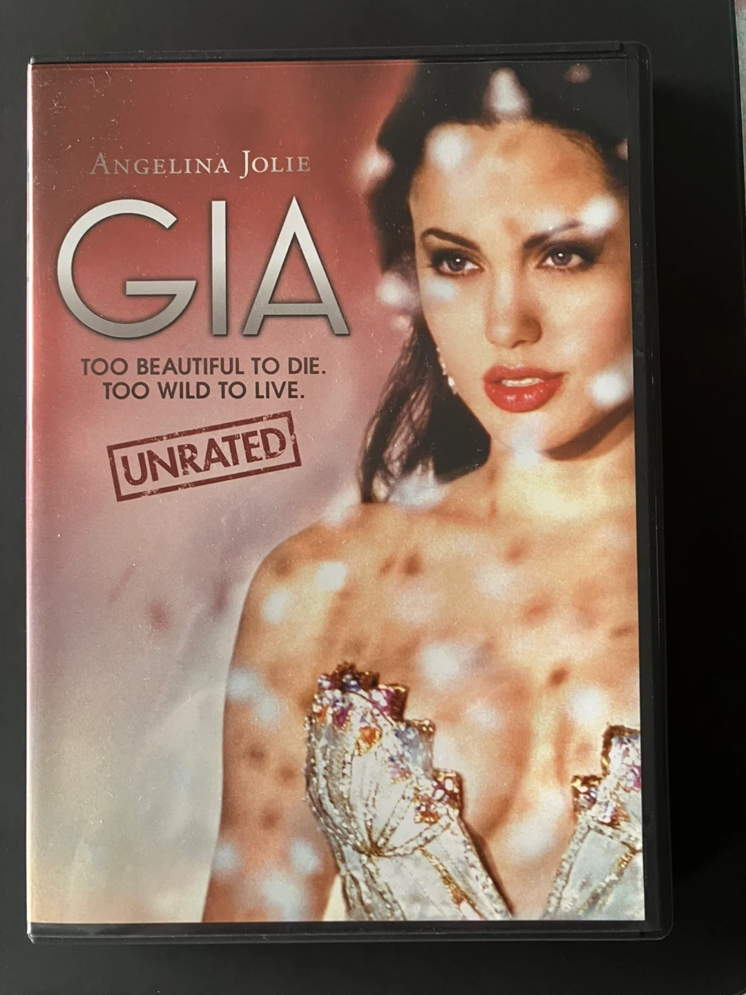 This DVD Gia, starring Angelina Jolie. It's based on the tragic life and times of America's first supermodel. The movie explores her career and life.