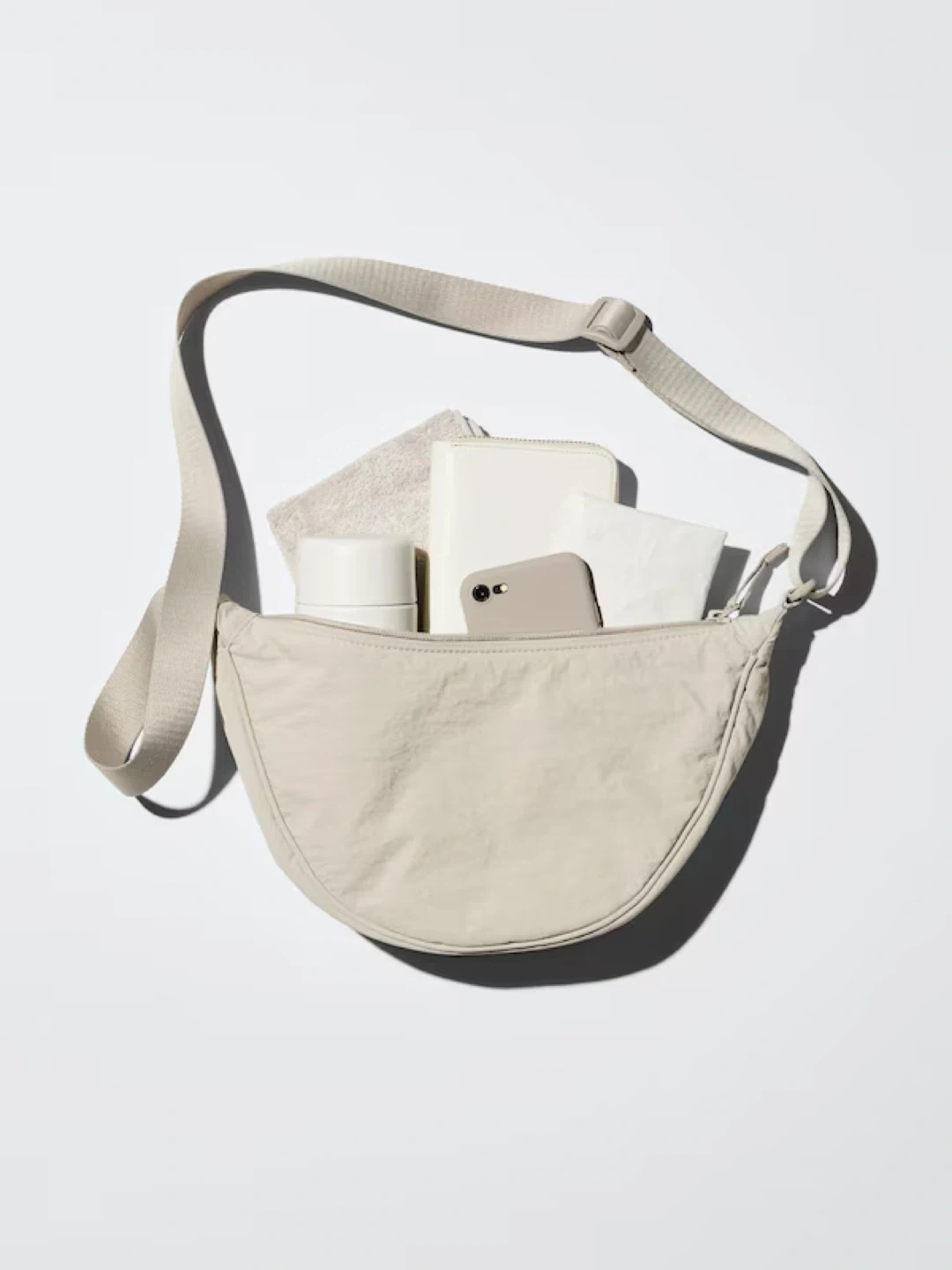 Selling a cute Uniqlo Half Moon Mini Shoulder Bag in a neutral beige colour! It's in great condition and perfect for carrying your essentials. It's lightweight and portable, making it a great everyday bag