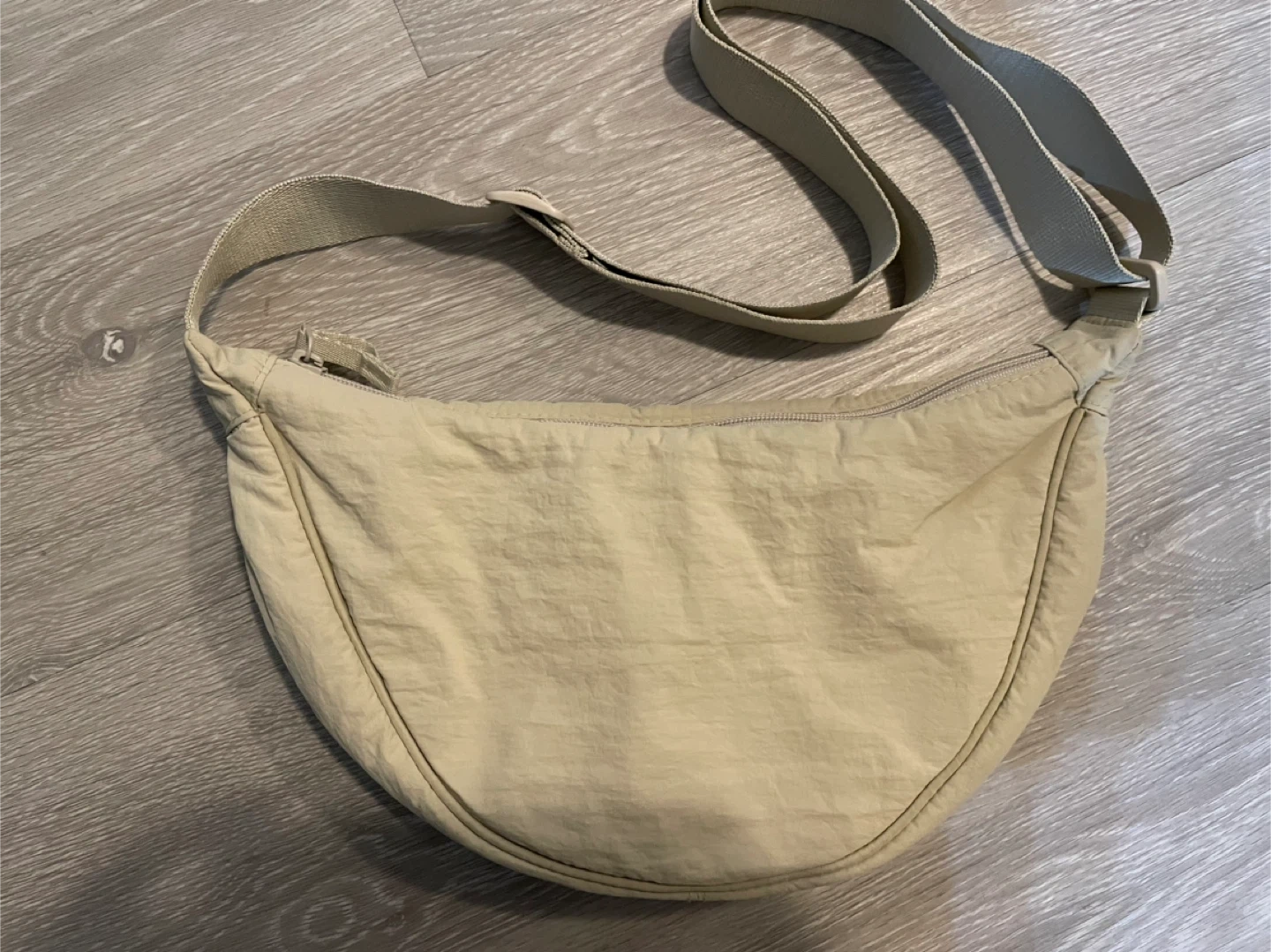 Selling a cute Uniqlo Half Moon Mini Shoulder Bag in a neutral beige colour! It's in great condition and perfect for carrying your essentials. It's lightweight and portable, making it a great everyday bag