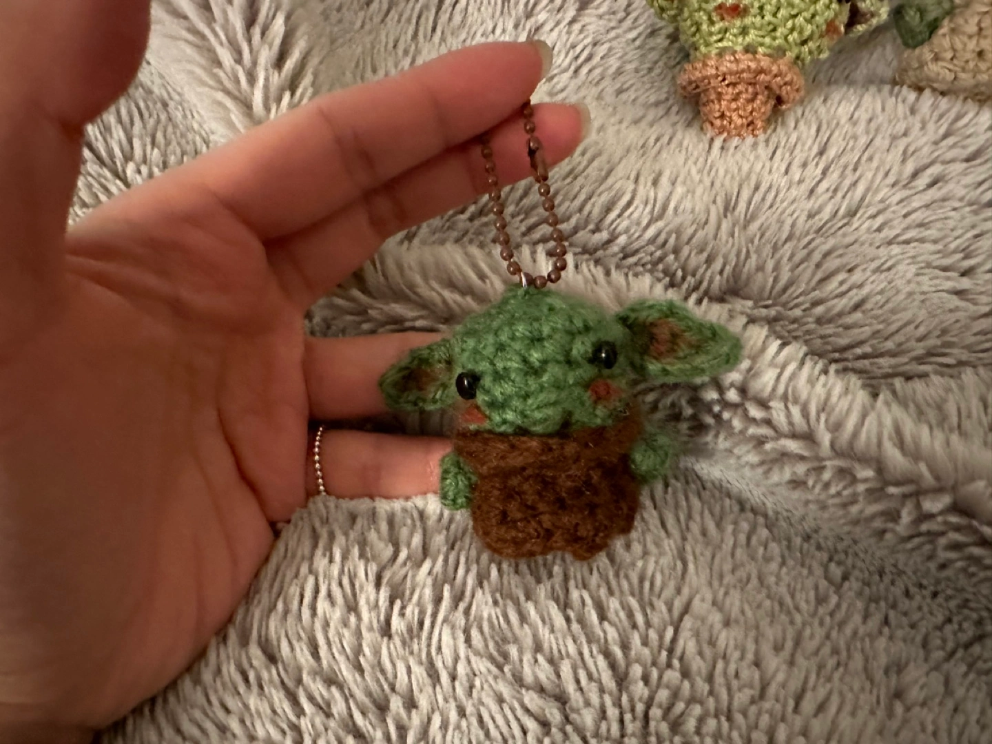 Handmade Crochet Grogu Keychain Set