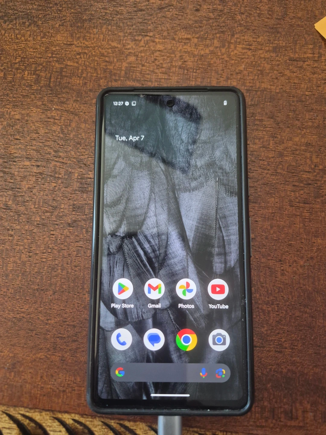 This is a Google Pixel 7 smartphone. It's in a black case but no screen protector. The back camera lens has some minor damage however it doesn't affect the picture quality!