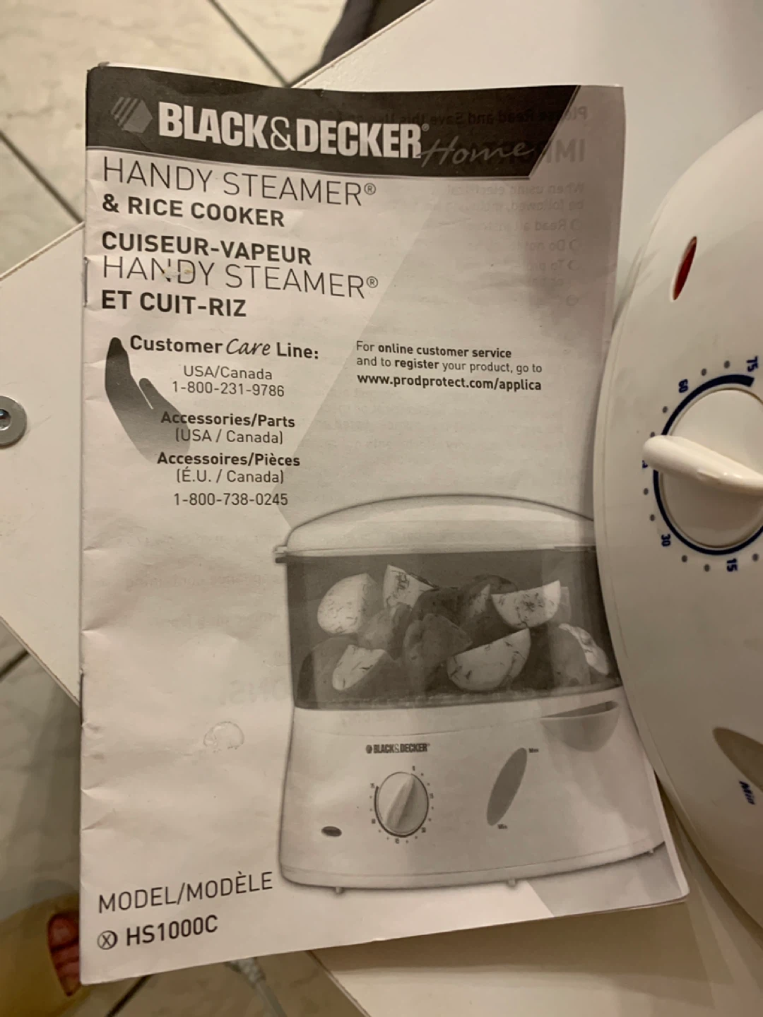 Free BLACK+DECKER Handy Steamer & Rice Cooker Model HS1000C