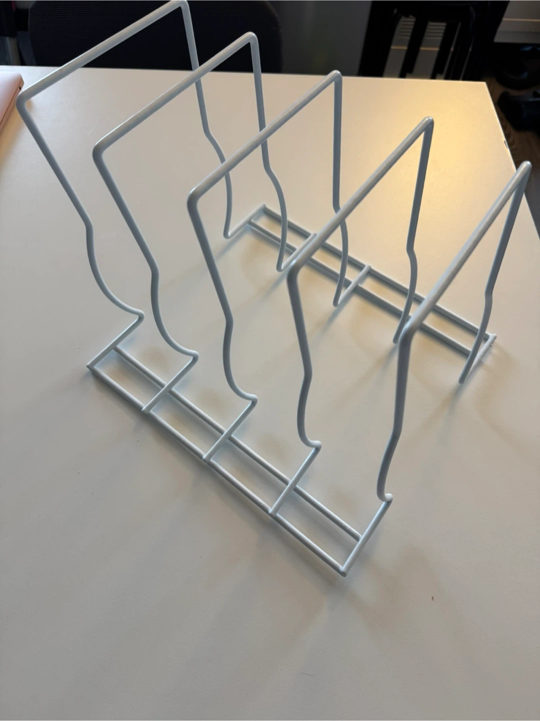 Giving away a handy white metal file organizer rack! It's in great shape and perfect for keeping your documents tidy on your desk or shelf. It has four slots to keep your files separated and organized. A great addition to any home or office!