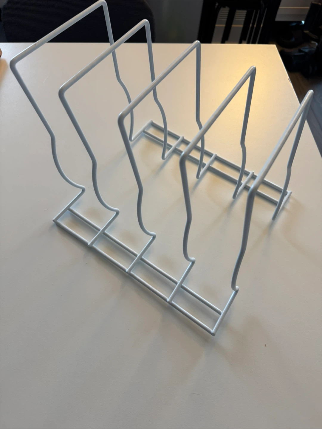 Giving away a handy white metal file organizer rack! It's in great shape and perfect for keeping your documents tidy on your desk or shelf. It has four slots to keep your files separated and organized. A great addition to any home or office!