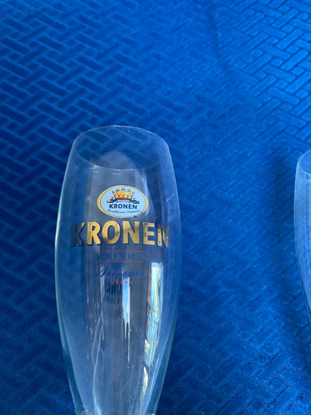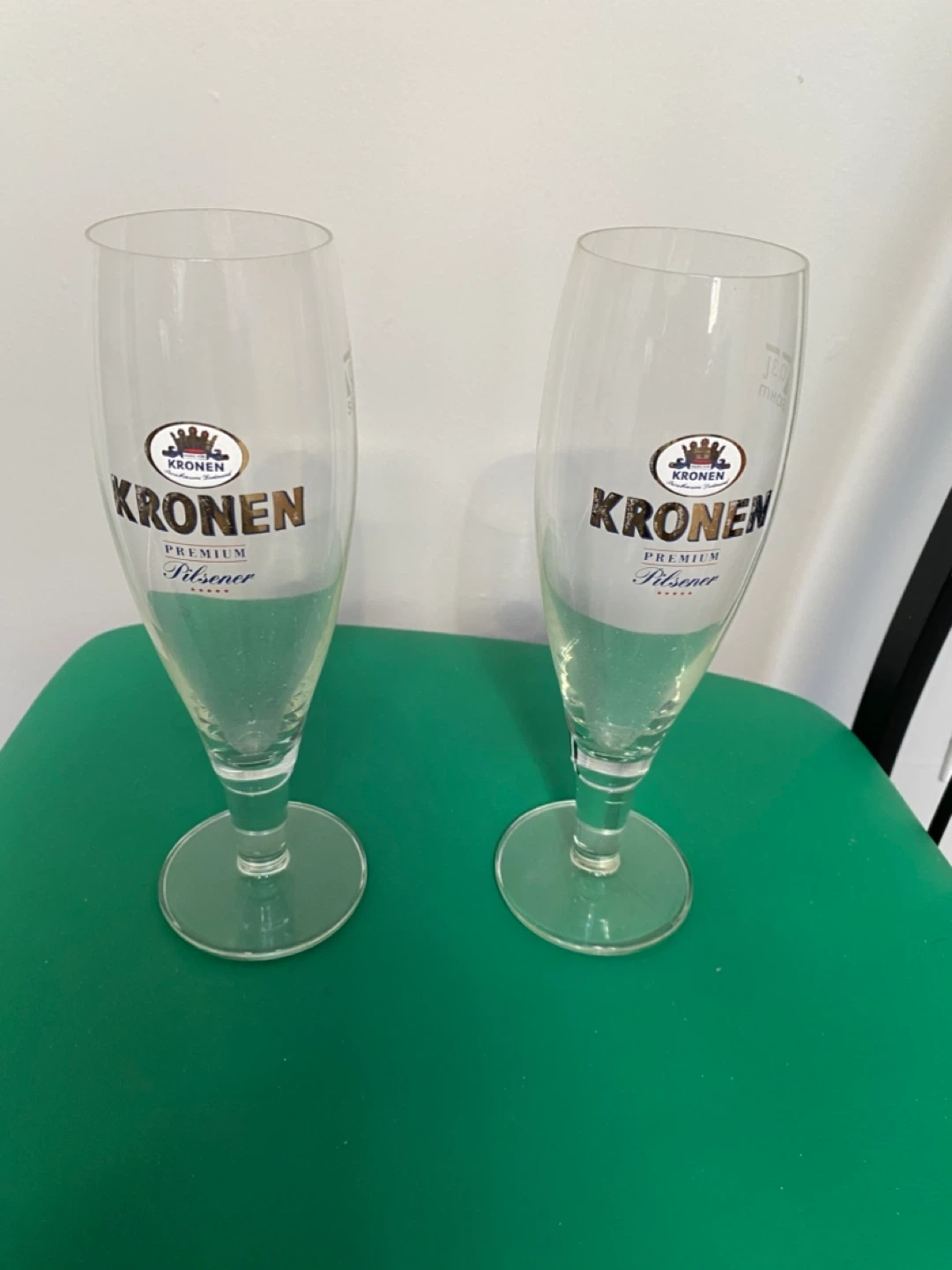 These are two KRONEN Pilsener beer glasses. They're made of clear glass. This set's great for enjoying your favourite pilsener!