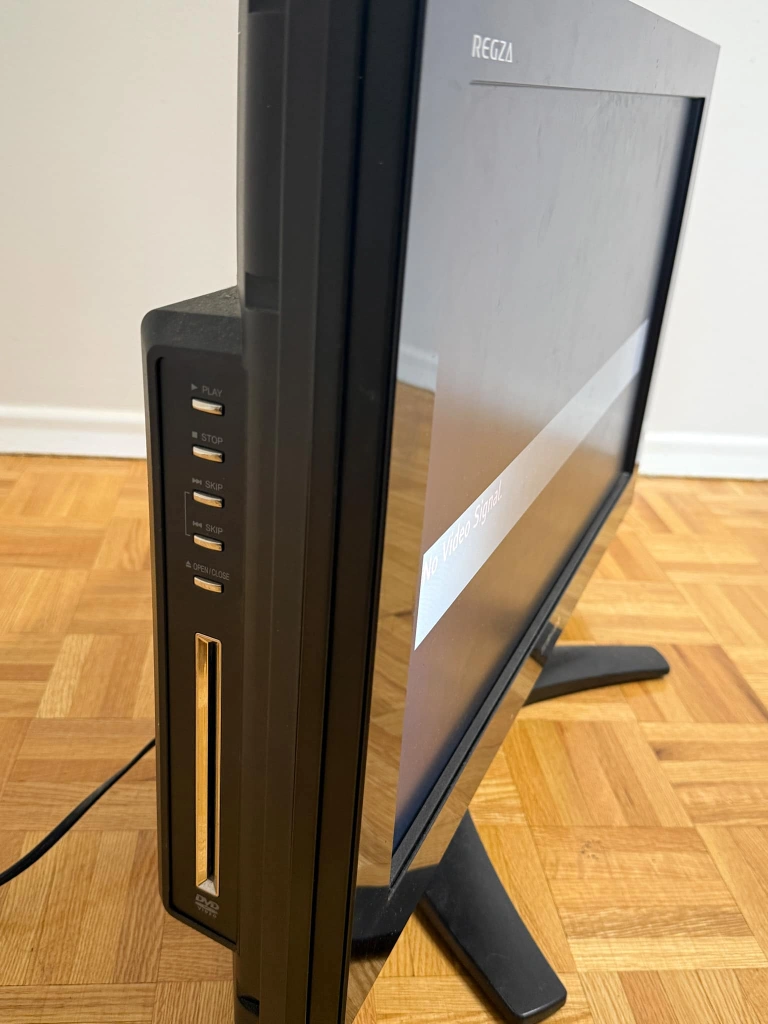 19-inch Toshiba Regza LCD TV with built-in DVD player. Black. Features include multiple inputs. Pre-owned. I don't have remote. It's a moving out sale.